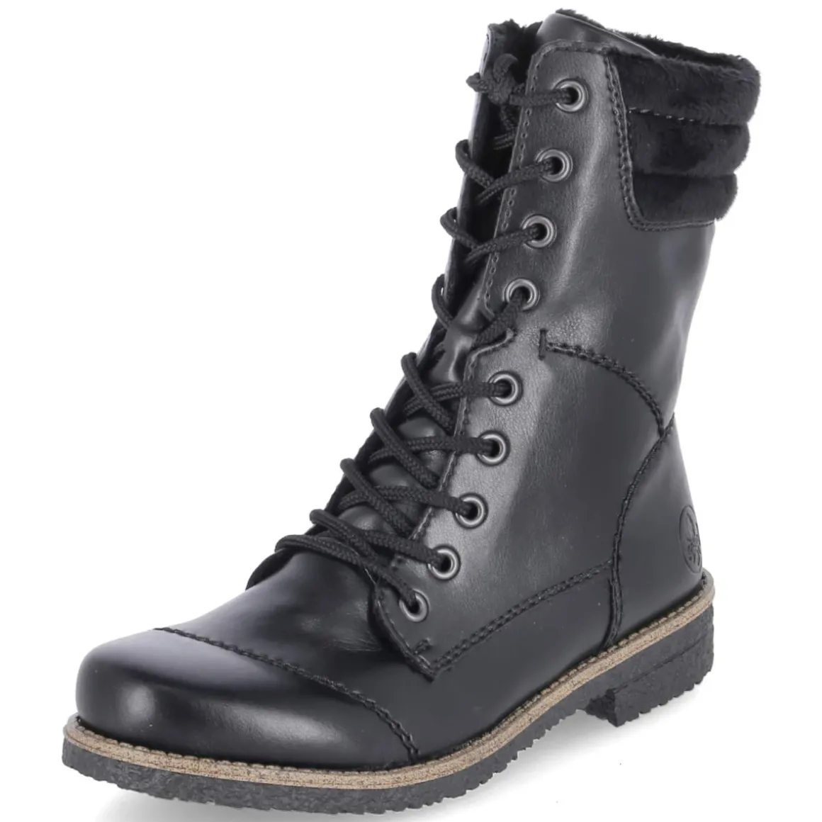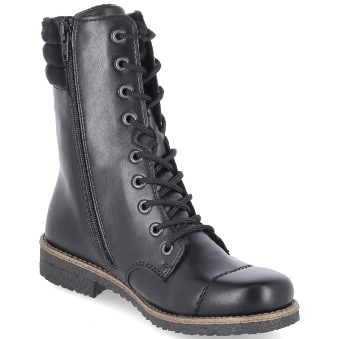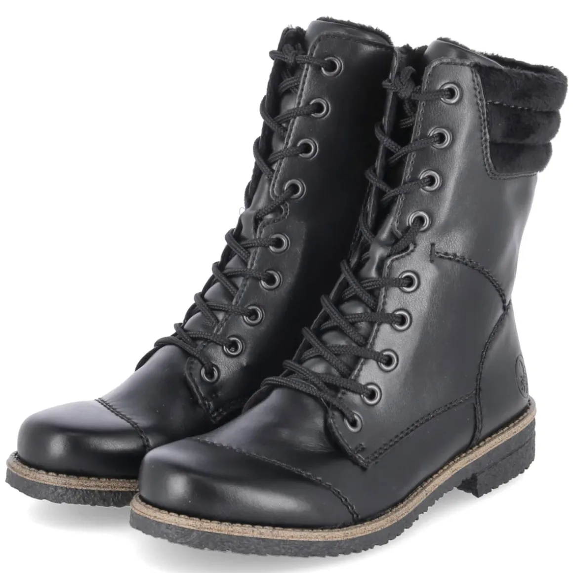 Diese schwarzen Schnürstiefeletten von Rieker vereinen Komfort und Alltagstauglichkeit in einem klassischen Look. Das pflegeleichte Kunstleder mit dekorativen Ziernähten trifft auf eine runde Schuhspitze und einen 3 cm hohen Blockabsatz, der sicheren Stand bietet. Warmfutter mit weichem Teddyfutter umschließt den Fuß angenehm, während der weiche Schafteinstieg und die verstärkte Ferse für Halt und Bequemlichkeit sorgen. Ein gepolstertes, herausnehmbares Wechselfußbett und die Textil-Decksohle unterstützen den Laufkomfort, das relaxt leichte Design schont die Füße auf langen Wegen. Praktisch: die Kombination aus Schnürsenkel & Reißverschluss erleichtert den Einstieg. Das Modell fällt normal aus. Modetipp: Zu schmaler Jeans, Oversize-Strick und Wollmantel entsteht ein zeitloser Winter-Look, der sowohl in der City als auch im Büro funktioniert.