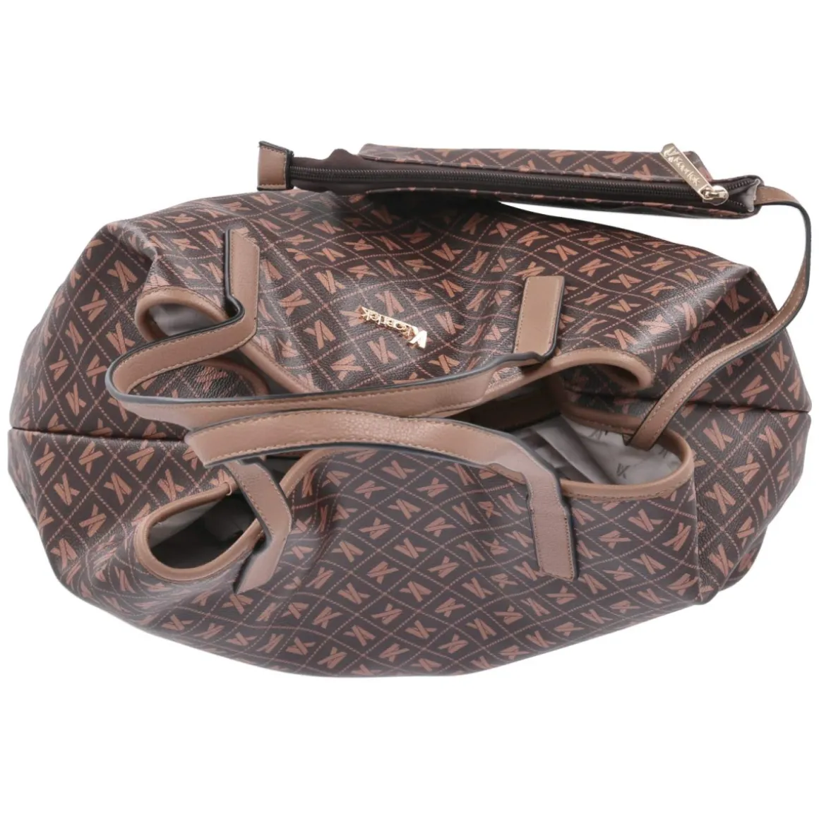 Dieser Damen-Shopper in warmem Braun verbindet großzügiges Volumen mit eleganter Struktur. Das bedruckte Markenmuster verleiht dem robusten Begleiter einen markanten Look, während zwei feste Tragehenkel und der verstärkte Boden für sicheren Halt und Formstabilität sorgen. Mit Maßen von ca. 30 x 40 x 20 cm und rund 20 Litern Fassungsvermögen nimmt das Hauptfach mit Magnetverschluss Unterlagen, Tablet und Alltagsutensilien mühelos auf. Im Inneren schaffen zwei Steckfächer, zwei Stiftplätze und ein Reißverschlussfach übersichtliche Ordnung, ergänzt durch eine praktische Einsatztasche an einem kurzen Riemen, die Kleinteile stets griffbereit hält. Die klare Silhouette passt vom Büro bis zum Stadtbummel und harmoniert ideal mit herbstlichen Farbwelten. Modetipp: Zu monochromen Outfits in Creme und Karamell getragen entsteht ein edler Ton-in-Ton-Look, den goldfarbene Accessoires stilvoll abrunden.