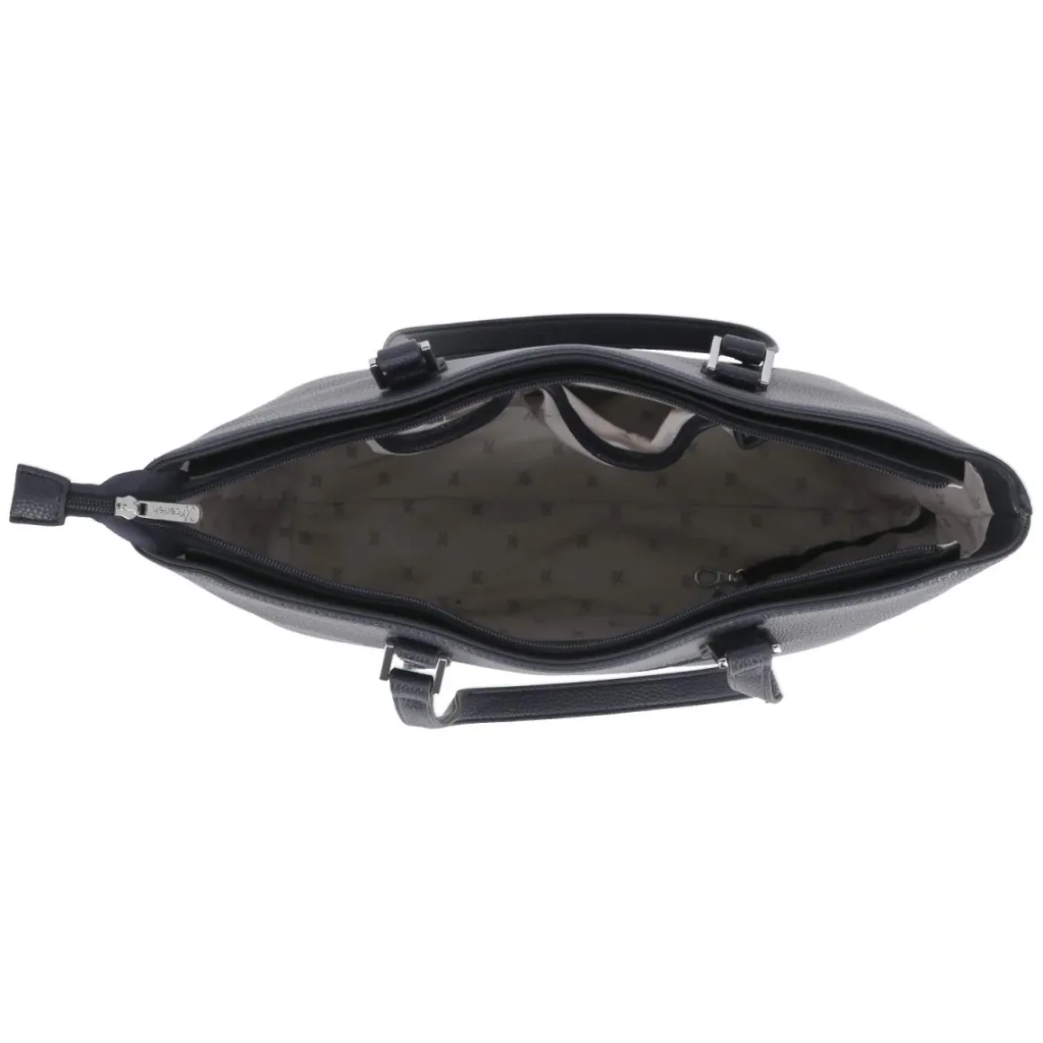 Dieser Shopper in klarem Blau vereint feminine Eleganz mit durchdachter Funktion. Das Format von ca. 28 x 32 x 12 cm fasst rund 10 Liter und bleibt dank verstärktem Boden mit Metallfüßchen formstabil, selbst bei vollem Inhalt. Zwei feste Henkel von ca. 60 cm Länge liegen angenehm auf der Schulter, während das Frontlogo einen dezenten Akzent setzt. Wertsachen sind im rückseitigen Reißverschlussfach sicher aufgehoben; das Reißverschlusshauptfach öffnet den Blick auf ein strukturiertes Innenleben mit weiterem Reißverschlussfach, Schlüsselband mit Karabiner, zwei Steckfächern und zwei Stiftplätzen. So bleibt alles schnell griffbereit und ordentlich. Die hochwertige Verarbeitung und der zuverlässige Reißverschluss machen das Modell zum täglichen Favoriten vom Büro bis zum Wochenendbummel. Modetipp: Mit Ringelshirt, hellem Trench und Loafern entsteht ein souveräner City-Look.