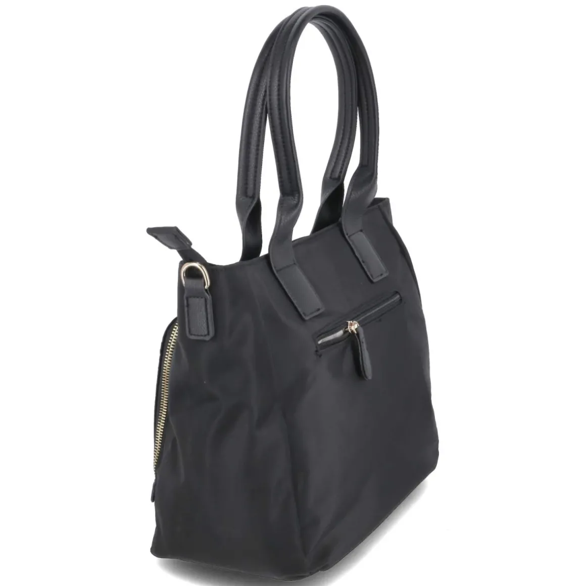 Zeitloser Damen-Shopper in Schwarz, der Eleganz und Alltagstauglichkeit vereint. Die goldglänzenden Metallelemente setzen edle Akzente, während der verstärkte Boden Struktur und Standfestigkeit bringt. Mit ca. 25 x 30 x 15 cm bietet das Format rund 10 Liter Volumen für tägliche Essentials. Der sichere Reißverschluss schützt den Inhalt, außen vorne und hinten sorgen zusätzliche RV-Fächer für schnellen Zugriff. Innen halten zwei Steckfächer und ein weiteres RV-Fach Ordnung. Zwei Henkel von ca. 50 cm ermöglichen bequemes Tragen in der Hand oder über der Schulter, der lange, verstellbare Gurt von ca. 120 cm erweitert die Trageoptionen bis zur Crossbody-Variante. Der Look bleibt klar, modern und vielseitig von Büro bis Dinner. Modetipp: Zum schwarzen Blazer, weißer Bluse und Goldschmuck tragen, um die Hardware aufzugreifen; dazu Loafer oder zarte Slingbacks für ein stimmiges Finish.