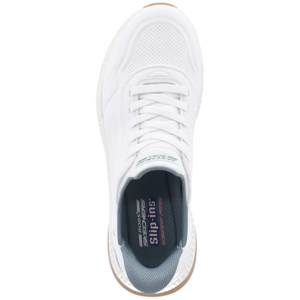 Der Skechers Slip-Ins BOBS SPORT SQUAD vereint sportliche Dynamik und unkomplizierten Komfort in einem cleanen, weißen Herren-Sneaker. Das synthetische Obermaterial zeigt eine pflegeleichte Oberfläche mit dynamischen Prägungen und feinen Lochungen, die der modernen Optik Struktur und leichte Luftigkeit verleihen. Dank ohne Verschluss gelingt der Einstieg besonders einfach; ein integriertes Elastikband unterstützt einen flexiblen, sicheren Sitz. Die beste Memory-Foam-Fußbettung federt jeden Schritt weich ab, während die textile Decksohle angenehm am Fuß liegt. Eine verstärkte Ferse stabilisiert die Passform, die flexible, rutschfeste Laufsohle gibt zuverlässigen Halt im urbanen Alltag. Mit runder Vorderkappe und normaler Passform zeigt sich das Modell vielseitig kombinierbar – vom Büro bis zum Wochenend-Look. Modetipp: Besonders wirkungsvoll zu einer schmalen hellen Chino, cleanen weißen Socken und einem minimalistischen Overshirt in Ecru oder Grau.