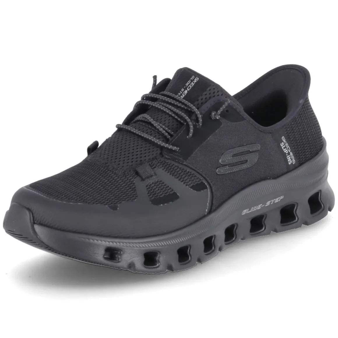 Der Skechers Slip-Ins GLIDE STEP PRO vereint unkomplizierten Einstieg ohne Verschluss mit reaktionsfreudigem Komfort. Das atmungsaktive Obermaterial aus Textil schmiegt sich an den Fuß, während die runde Spitze und der verstärkte Fersen- und Zehenbereich Stabilität im Alltag bieten. Die beste Memory-Foam-Fußbettung passt sich der individuellen Fußform an und sorgt in Kombination mit der flexiblen, rutschfesten Laufsohle und dämpfenden Luftpolstern für souveräne Auftritte auf unterschiedlichen Untergründen. Das relaxtes Leichtgewicht punktet mit moderner Optik in tiefem Schwarz und ist zudem waschmaschinen geeignet – frischer Auftritt inklusive. Größenhinweis: fällt normal aus, daher unkomplizierte Wahl der regulären Größe. Modetipp: Mit schmaler Tech-Jogger, cleanem Overshirt und dezenten Sportsocken entsteht ein urbaner Look, der Funktion und Stil lässig verbindet.