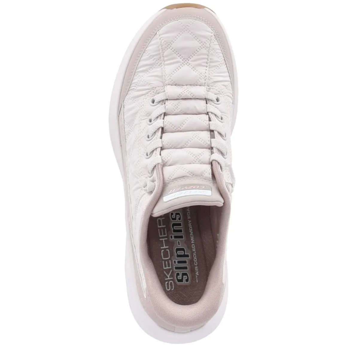 Der Slip-ins Sneaker CONTOUR FOAM von Skechers verbindet unkomplizierten Komfort mit einem cleanen Auftritt in Beige. Das Obermaterial aus Textil und Synthetik zeigt eine dezent karierte Prägung und wird von einem Elastikband in Schnüroptik akzentuiert. Dank Gummizug schmiegt sich der Schuh sicher an den Fuß, während die runde Spitze und der gepolsterte Einstieg für entspanntes Tragen sorgen. Das vegane Design punktet mit bester Memory-Foam-Fußbettung auf CONTOUR-FOAM-Basis, die sich dem Fuß anpasst. Verstärkte Fersen- und Zehenbereiche erhöhen die Langlebigkeit, die flexible Laufsohle bietet rutschfeste Elemente für verlässlichen Grip. Maschinenwaschbar und als relaxtes Leichtgewicht ideal für jeden Tag, fällt der Sneaker größengetreu aus. Modetipp: Ton-in-Ton zu cremefarbenen Wide-Leg-Pants und Trenchcoat kombinieren – für einen mühelos edlen City-Look.