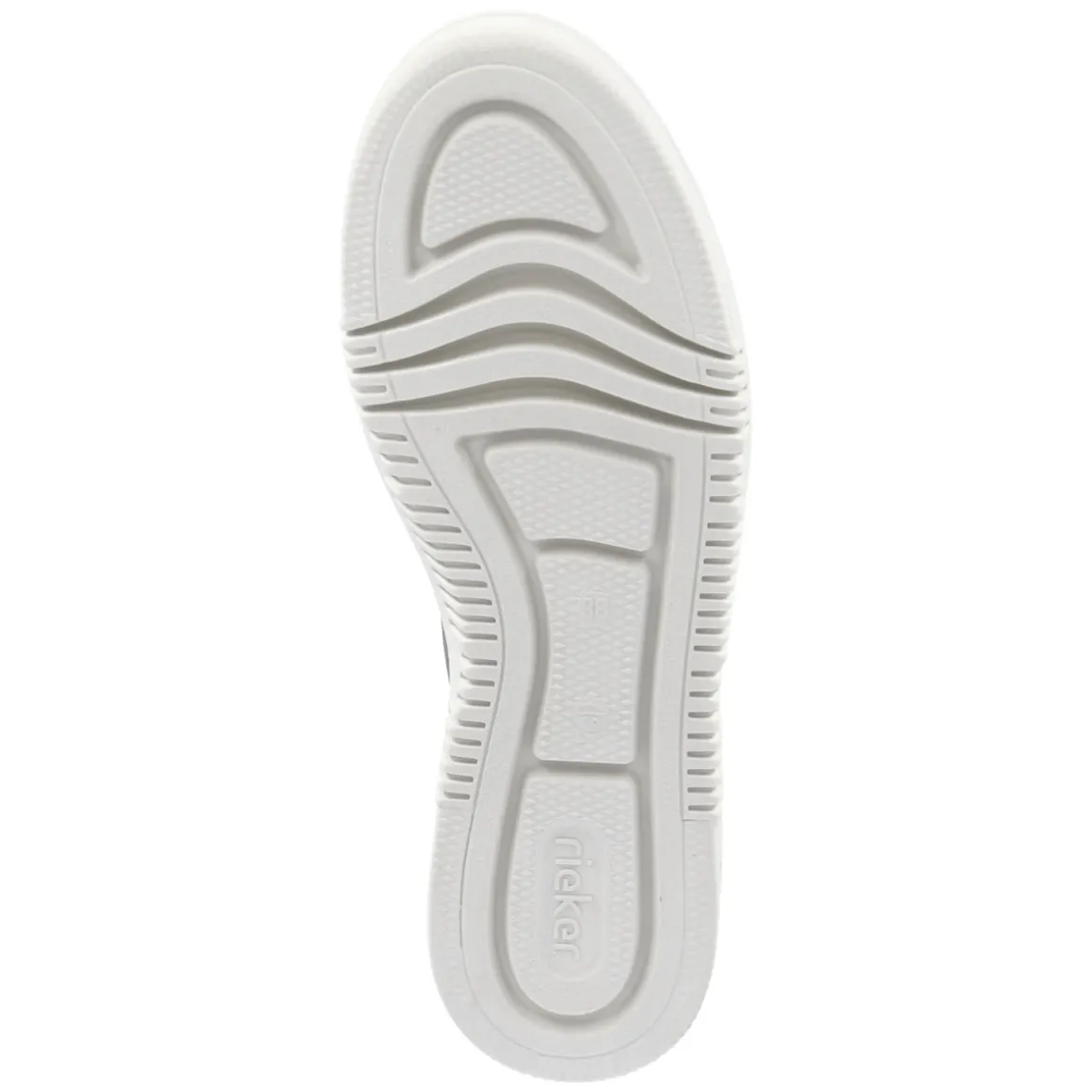 Der Slip-On-Sneaker von Rieker verbindet unkomplizierten Chic mit durchdachtem Komfort. Pflegeleichtes Kunstleder und die runde Schuhspitze sorgen für eine stilvolle, alltagstaugliche Optik, während der praktische Reißverschluss das Anziehen besonders leicht macht. Ein Elastikband in Schnüroptik gibt flexiblen Halt, die hautfreundliche Lederdecksohle und das weiche Fußbett verwöhnen bei jedem Schritt. Das geringe Gewicht entlastet auf langen Wegen, die 4 cm hohe Plateau-Sohle bietet angenehme Höhe und einen modernen Look. Ein besonderer Akzent ist die Fersenklappe mit Animal Print Leopard, die dem grünen Ton eine modische Note verleiht. Der Schuh fällt normal aus und begleitet zuverlässig durch Stadt und Freizeit. Modetipp: Zu Cropped-Jeans und weißem Hemd wirkt das Grün besonders frisch, ein beiger Trench rundet den Look souverän ab.