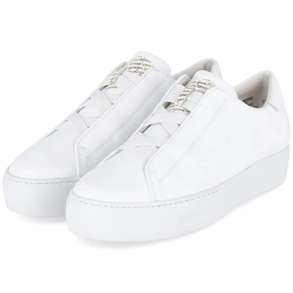 Der Slip-On-Sneaker von Paul Green vereint klare Linien mit durchdachter Funktion. Glattes, langlebiges Echtleder in Reinweiß und eine rund gearbeitete Kappe sorgen für einen zeitlosen Look, während die 3 cm hohe Plateau-Sohle subtil streckt und angenehm dämpft. Dank Elastikband in Schnüroptik gelingt der Einstieg mühelos, die Zunge mit leichtem Goldprint setzt einen feinen Akzent. Eine Lederdecksohle unterstützt das angenehme Klima im Schuh, die rutschhemmende Laufsohle bietet zuverlässigen Halt. Das schlichte Design eröffnet vielseitige Kombinationsmöglichkeiten, fällt zudem normal aus und passt so unkompliziert in die Garderobe. Modetipp: Besonders modern wirkt der Sneaker zu cropped Mom-Jeans, hellem Strick und einem strukturierten Blazer in Beige – feiner Goldschmuck greift den dezenten Print elegant auf.