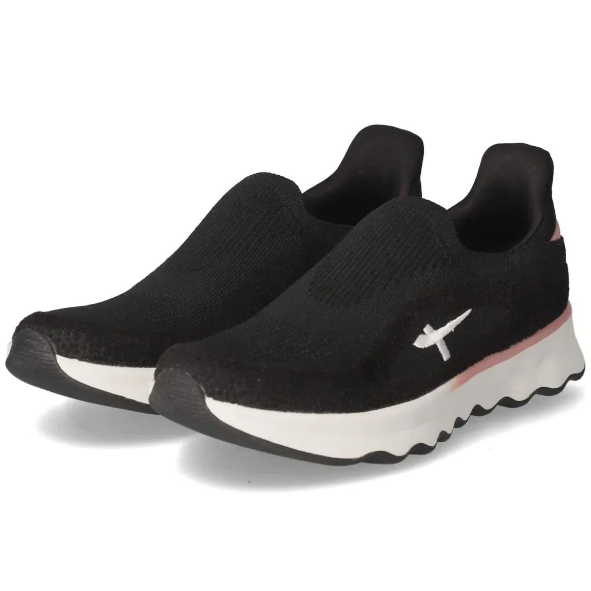 Der schnürbare Slipper von Tamaris vereint sportliche Leichtigkeit mit dezentem Chic. Schwarzes Obermaterial aus Textil und Synthetik wird von zartrosa Akzenten und einem weiß gestickten Logo belebt, die runde Spitze gibt den Zehen angenehm Raum. Das komfortable Wechselfußbett aus Textil lässt sich bei Bedarf gegen eigene Einlagen tauschen, während die gepolsterte Ferse sanfte Dämpfung bei jedem Schritt schenkt. Eine flexible, rutschfeste Laufsohle sorgt auf glatten Böden für zuverlässigen Halt, der unkomplizierte Einstieg macht das An- und Ausziehen denkbar einfach. Das Modell fällt normal aus und richtet sich an Damen, die Wert auf Komfort und Stil legen. Die komplett veganen Materialien runden das durchdachte Design zeitgemäß ab. Modetipp: Mit cropped Straight-Jeans, lockerem Blazer und feinen Söckchen in Zartrosa entsteht ein moderner City-Look mit harmonischem Farbspiel.