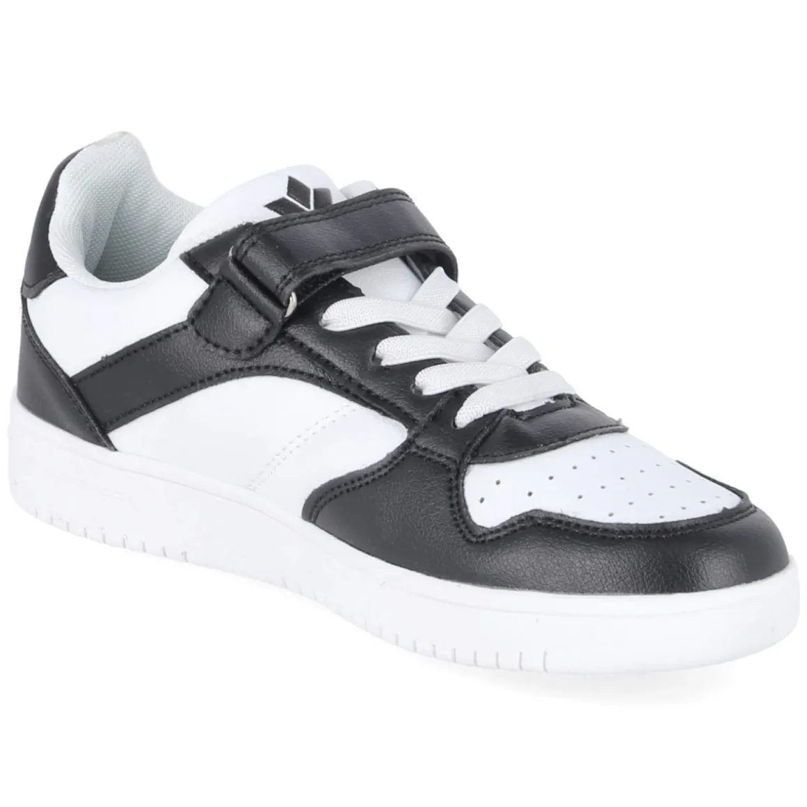 Der Sneaker CHAD VS von Lico vereint kindgerechten Komfort mit sportlichem 90er-Design. Das weiße Synthetik-Obermaterial mit schwarzen Elementen ist pflegeleicht und lässt sich im Alltag schnell reinigen. Die Passform fällt normal aus, während ein gepolsterter Einstieg und das weich abgefederte, herausnehmbare Fußbett langanhaltenden Tragekomfort sichern. Klettverschluss und Elastikband in Schnüroptik erleichtern das Handling und geben zusammen mit der runden Spitze sicheren Halt. Eine flexible Laufsohle mit Grip unterstützt natürliche Abrollbewegungen, der verstärkte Fersen- und Zehenbereich sorgt für zusätzliche Stabilität. Das gelochte Schuhdeck fördert die Luftzirkulation – ideal für Spielplatz, Schule und Freizeit. Modetipp: Mit Jogger, College-Jacke und gerippten Sportsocken entsteht ein cooler Retro-Look.