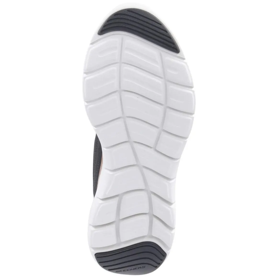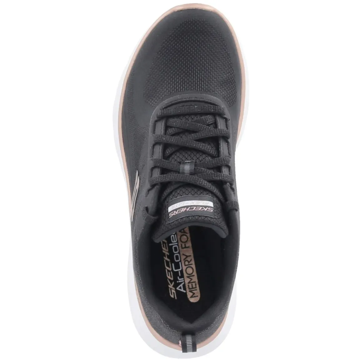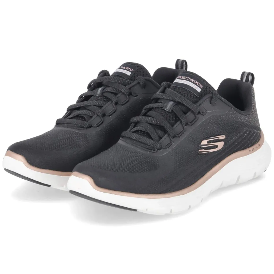 Der Skechers Sneaker ELEGANT GLOW verbindet sportliche Leichtigkeit mit edlem Finish. Das atmungsaktive Textilobermaterial in tiefem Schwarz wird von bronzefarbenen Highlights und einer passenden Ferse akzentuiert, wodurch der Look modern und vielseitig bleibt. Eine runde Schuhspitze und der klassische Schnürverschluss sorgen für bequemen Halt, während die beste Memory-Foam-Fußbettung jeden Schritt weich abfedert. Die flexible Laufsohle mit rutschfesten Elementen bietet zuverlässige Traktion im Alltag. Die Decksohle aus Textil schmiegt sich angenehm an, und das Modell fällt größengetreu aus. Praktisch im Pflegealltag: Der Sneaker ist waschmaschinengeeignet. Hergestellt aus veganen Materialien, liefert der FLEX APPEAL 5.0 ELEGANT GLOW Performance und Stil für Erwachsene, die Wert auf komfortable Damen-Sneaker legen. Modetipp: Zu einer schwarzen Wide-Leg-Hose und einem bronzefarbenen Satin-Top entsteht ein harmonisches, urban-elegantes Ensemble.