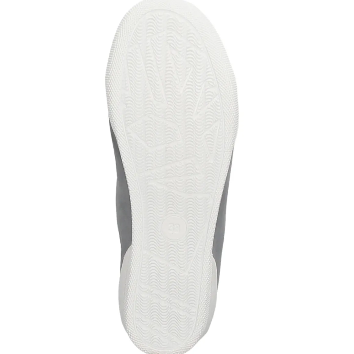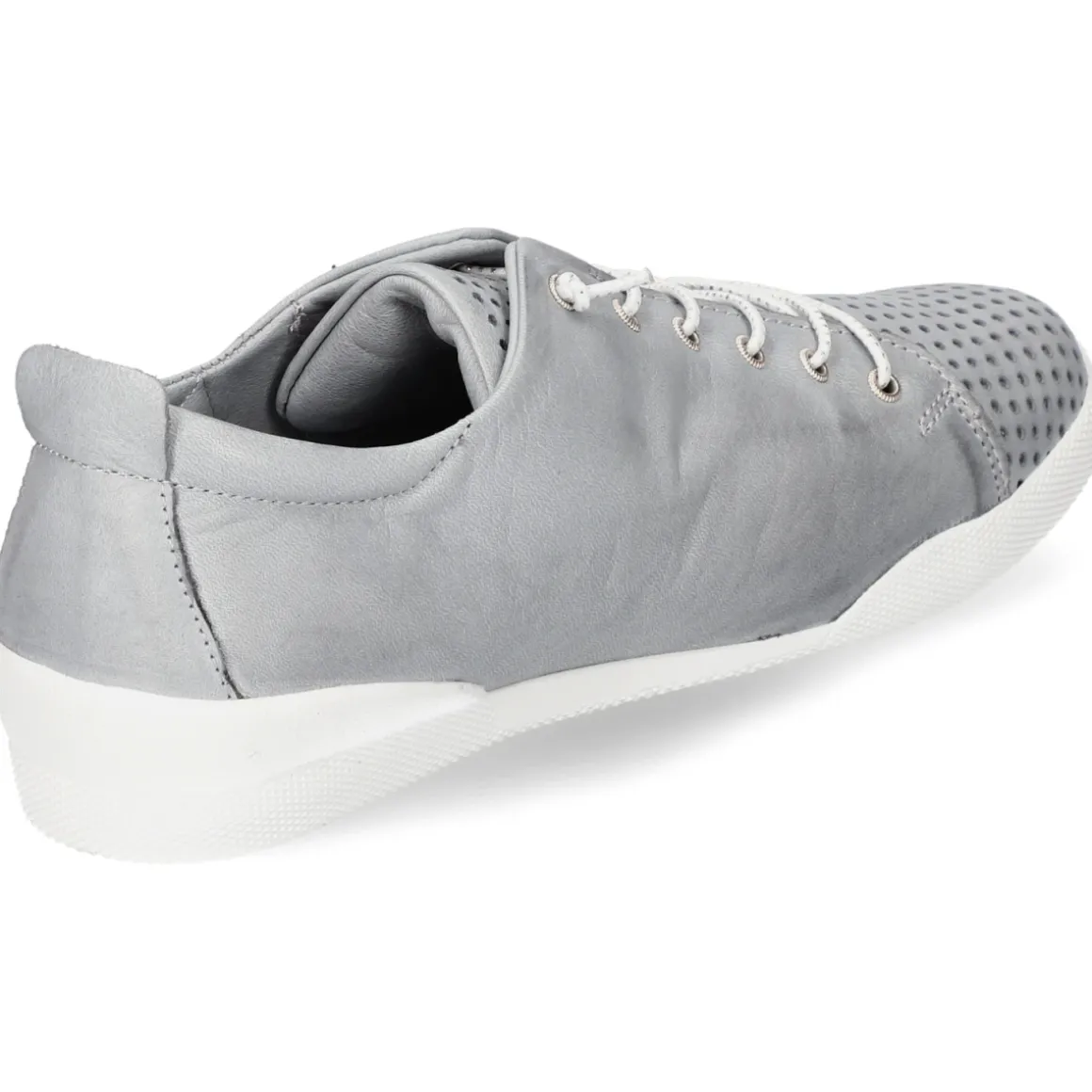 Dieser Damen-Sneaker von Andrea Conti verbindet lässigen Charme mit eleganter Optik. Weiches Rauleder in dezentem Grau und ein feines Lochstanzmuster im Vorderfuß sorgen für leichte Anmutung und angenehmes Fußklima, das Lederfutter schmeichelt der Haut. Der gepolsterte Einstieg und die gepolsterte, herausnehmbare Leder-Decksohle bieten langanhaltenden Komfort, während Zehen- und Fersenbereich verstärkt sind. Die rutschhemmende Profilsohle schenkt sicheren Halt, die runde Spitze und der Schnürverschluss stehen für klassischen Look und variable Passform. Das seitliche Dekoelement setzt einen unaufdringlichen Akzent. Fällt größengetreu aus und eignet sich als zuverlässiger Alltagsbegleiter von Büro bis Freizeit. Modetipp: Zu gekürzten Jeans und feinem Strick wirkt das Grau besonders modern; ein monochromes Outfit hebt die elegante Linienführung hervor.