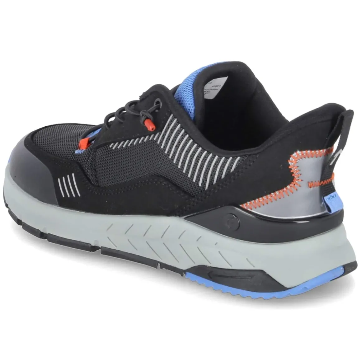 Der Ricosta Halbschuh NITE in Schwarz verbindet kindgerechten Komfort mit einem modernen Material-Mix aus Textil und Synthetik. Die runde Schuhspitze und der gepolsterte Einstieg bieten angenehmen Halt, während der verstärkte Zehen- und Fersenbereich zusätzliche Stabilität im Alltag schafft. Schnürsenkel sorgen für individuellen Sitz, das gepolsterte, herausnehmbare Wechselfußbett und die textile Decksohle unterstützen bequemes Tragen über viele Stunden. Reflektierende Details, ergänzt durch blaue Akzente, erhöhen die Sichtbarkeit bei Dämmerung. Die flexible, rutschhemmende und griffige Laufsohle gibt Sicherheit auf unterschiedlichen Untergründen. Der Schuh fällt normal aus und bietet vielseitige Kombinationsmöglichkeiten für Kinder. Modetipp: Zu dunklen Denim- oder Cargohosen und einer leichten Funktionsjacke mit blauen Elementen entsteht ein harmonischer, urbaner Look.