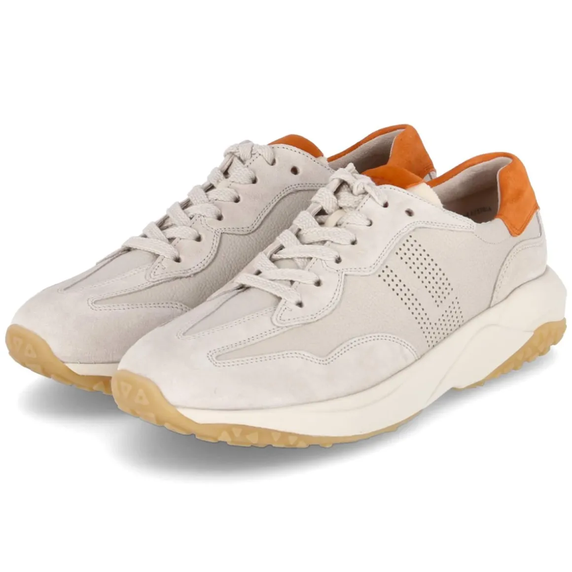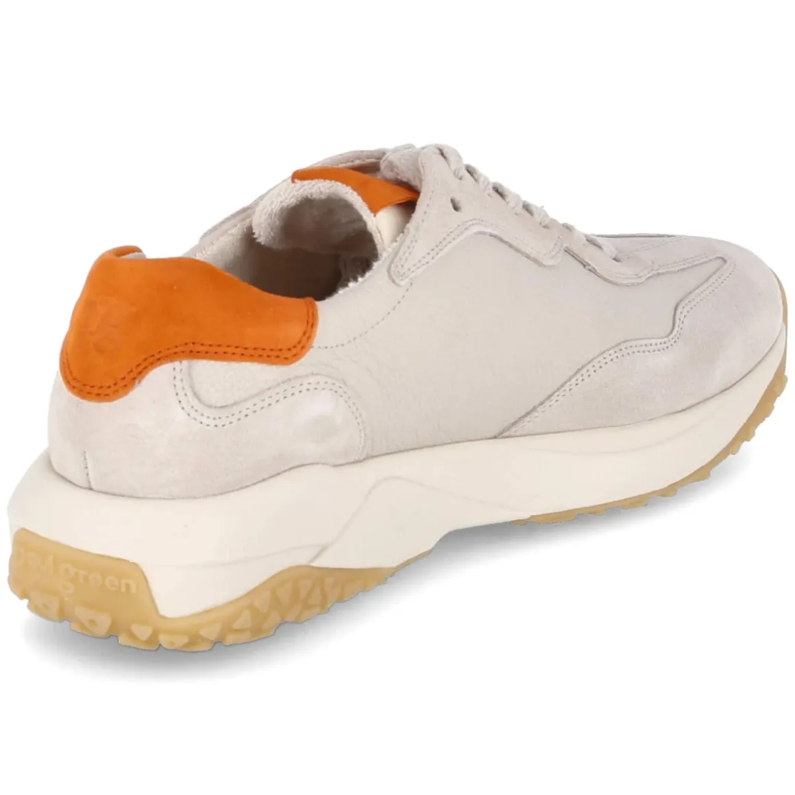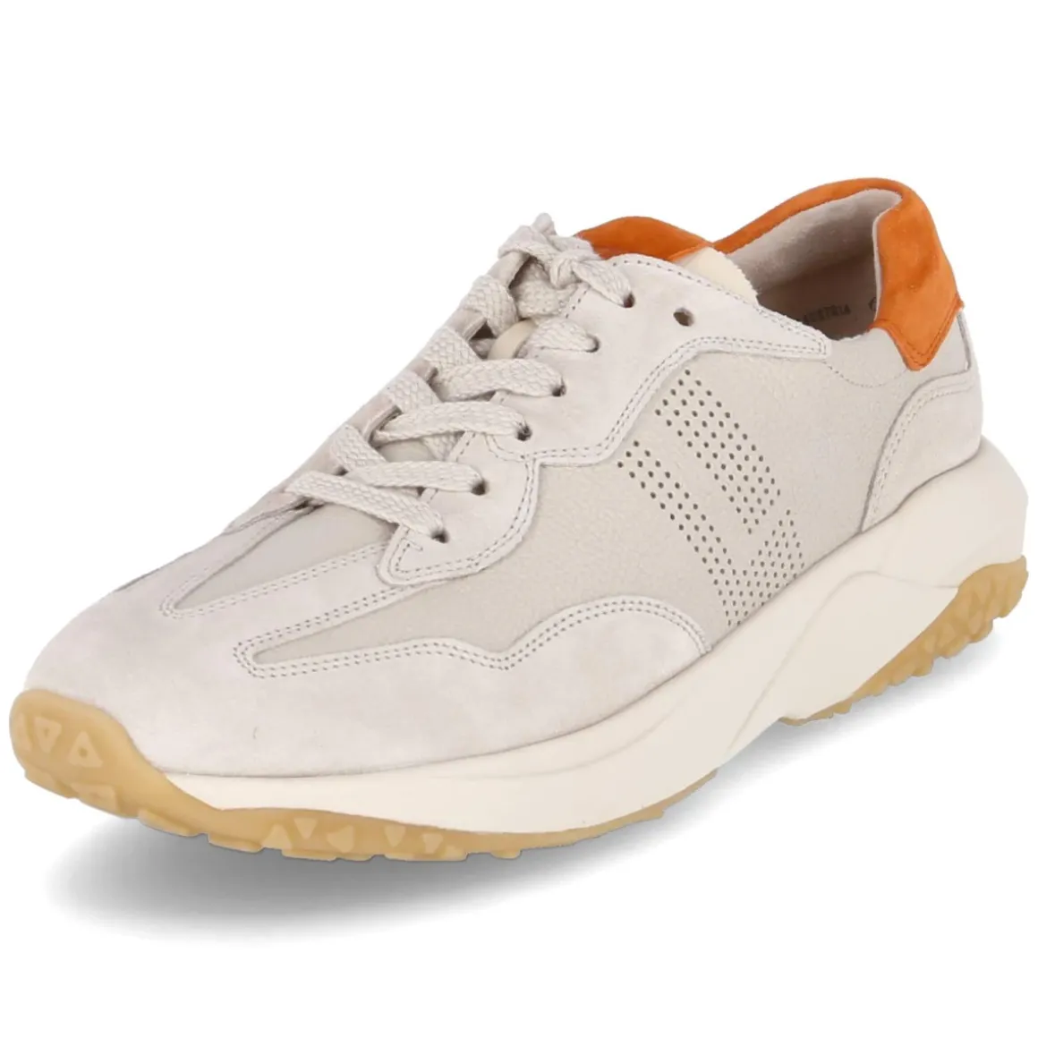 Dieser beige Sneaker von Paul Green verbindet urbanen Chic mit durchdachtem Komfort. Der stilvolle Ledermix setzt eine feine Struktur, während orange Highlights der modernen Optik frische Energie geben. Die runde Spitze und die seitliche Lochung sorgen für ein luftiges Tragegefühl, der gepolsterte Einstieg und das weich gepolsterte Wechselfußbett verwöhnen bei jedem Schritt. Für Stabilität im Alltag stehen der verstärkte Zehen- und Fersenbereich sowie die rutschhemmende Laufsohle. Die Lederdecksohle und die klassische Schnürung sichern einen hochwertigen, passgenauen Sitz, die Passform fällt normal aus. Ein vielseitiger Begleiter für City, Büro und Freizeit, der feminine Leichtigkeit mit sportiver Note verbindet. Modetipp: Mit cremefarbener Wide-Leg-Hose und einem sandigen Stricktop entsteht ein edler Ton-in-Ton-Look; ein Gürtel oder eine Crossbody-Bag mit orangefarbenem Akzent greift die Details stilvoll auf.