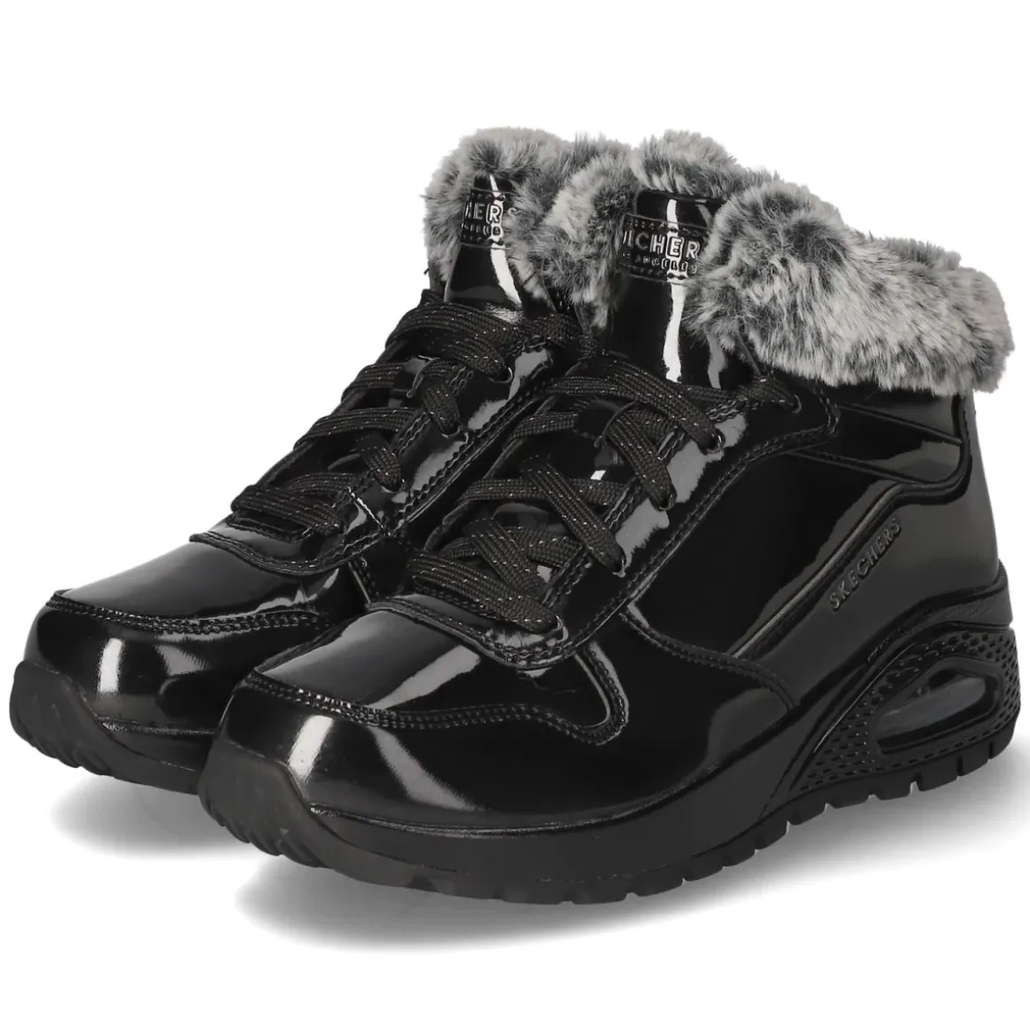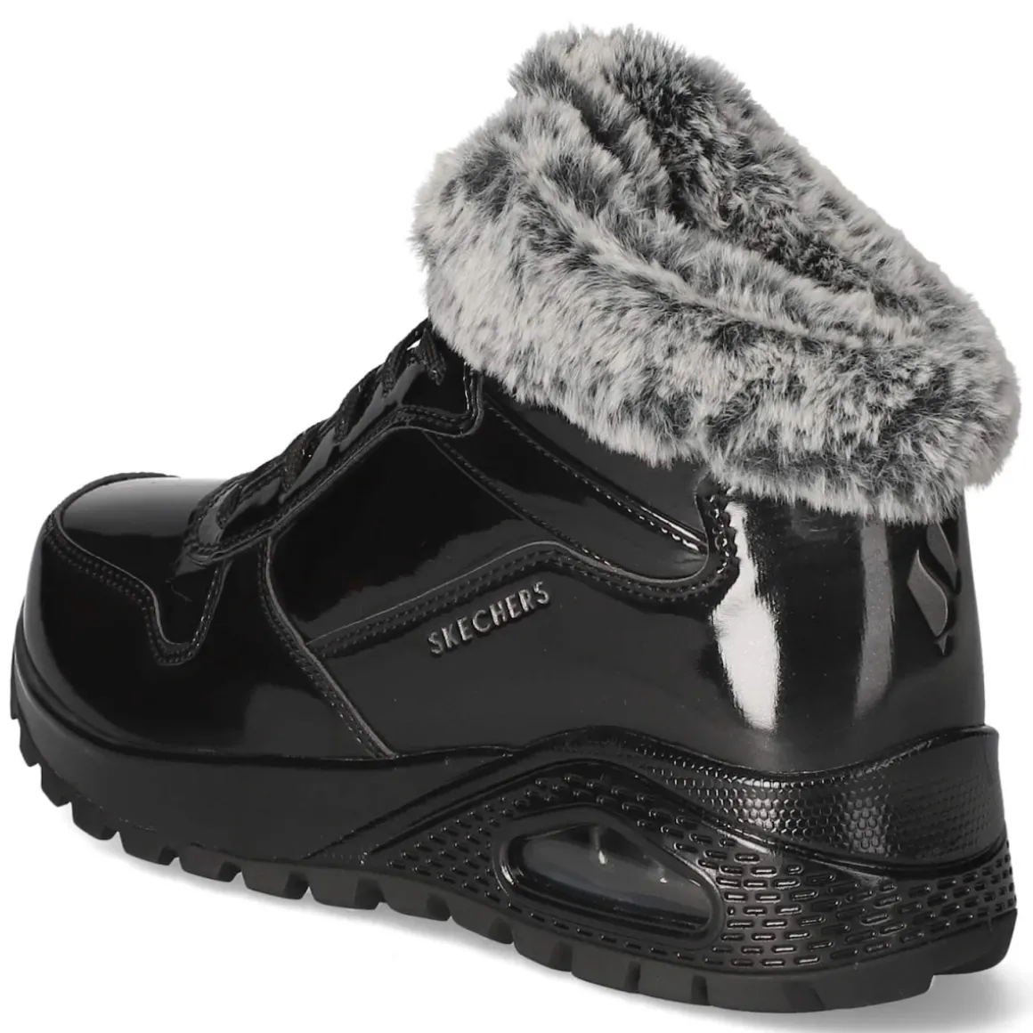 Der Skechers Sneaker UNO RUGGED vereint sportliche Linien mit einer eleganten Lackoptik in tiefem Schwarz. Das synthetische Obermaterial zeigt sich glatt und charakterstark, die runde Spitze wahrt den komfortablen Auftritt. Innen sorgt ein warmes Futter für behagliches Klima an kalten Tagen, während die textile Decksohle weich begleitet. Die Schnürung erlaubt präzise Anpassung und stabilen Halt, ohne die klare Silhouette zu stören. Die Passform fällt normal aus und macht die Wahl der Größe unkompliziert. Mit seinem cleanen Look passt das Modell zu urbanen Winterstyles ebenso wie zu dezenten Business-Casual-Outfits. Modetipp: Den Glanz des Schuhs mit matten Texturen wie Wollmantel, grobem Strick und einer geraden Denim balancieren, dazu eine strukturierte Crossbody-Bag für einen modernen Kontrast.