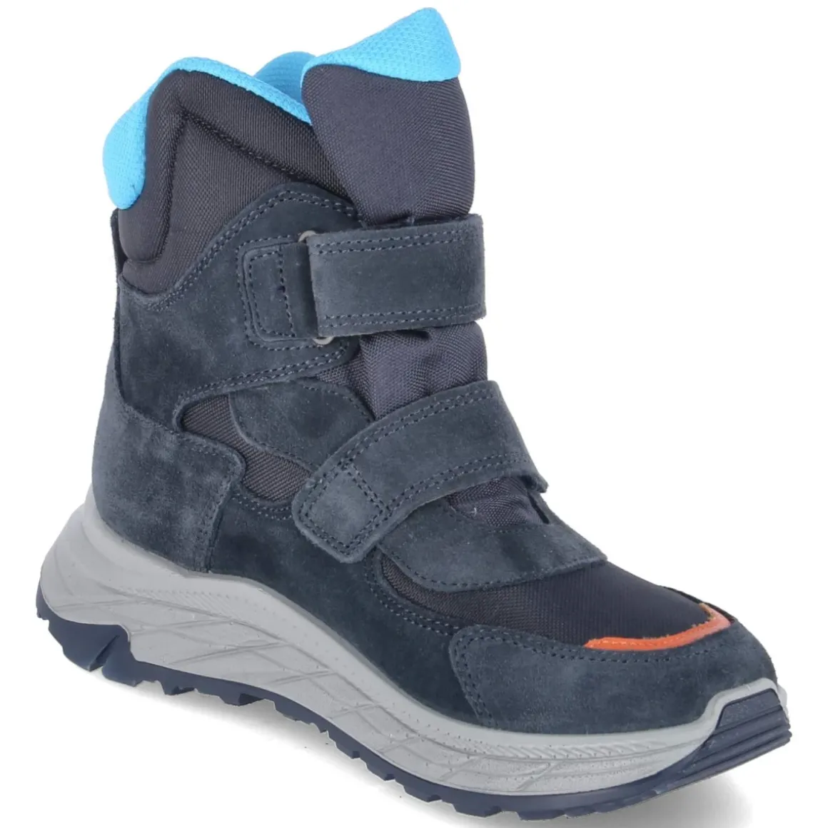 Die blauen Imac Snowboots für Kinder verbinden robuste Funktion mit sportlicher Optik. Der wasserfeste Material-Mix aus Leder und Textil mit IMACTEX hält Nässe zuverlässig ab, während das warme Futter an kalten Tagen für wohliges Fußklima sorgt. Dank rund zulaufender Spitze bleibt Zehenfreiheit erhalten, der gepolsterte Einstieg schont den Knöchel. Die flexible, rutschfeste Profilsohle bietet sicheren Halt auf winterlichen Wegen, verstärkte Fersen- und Zehenbereiche erhöhen die Strapazierfähigkeit. Der praktische Klettverschluss ermöglicht schnelles An- und Ausziehen, das Wechselfußbett lässt sich zum Lüften oder für Einlagen herausnehmen. Mit Textildecksohle und normal ausfallender Passform ideal für Alltag und Abenteuer im Schnee. Modetipp: Ton-in-Ton mit dunkelblauer Steppjacke und grauer Softshellhose kombinieren, farbige Mütze setzt einen frischen Akzent.