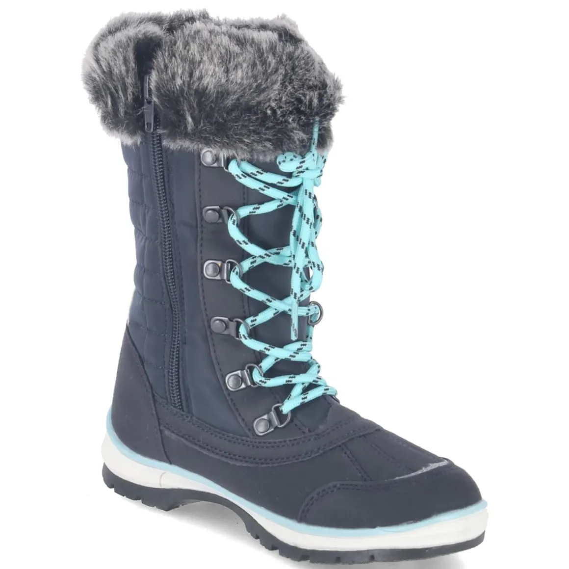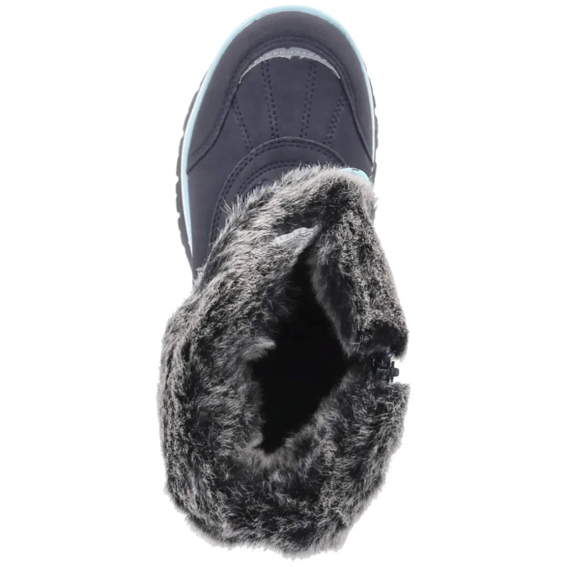 Die Snowboots LILLESAND von Lico verbinden Funktion und kindgerechtes Design für winterliche Wege. Mit wasserfester, zugleich atmungsaktiver Verarbeitung bleibt das Fußklima ausgewogen, während das weiche Warmfutter an frostigen Tagen zuverlässig schützt. Das Obermaterial aus Textil und Synthetik zeigt sich in dunklem Blau mit hellblauen Highlights, akzentuiert von einer grauen Kunstfellkrempe. Schnürsenkel und seitlicher Reißverschluss erleichtern das An- und Ausziehen, die runde Spitze sowie verstärkter Fersen- und Zehenbereich geben Stabilität. Reflektierende Details erhöhen die Sichtbarkeit, die flexible, rutschfeste Profilsohle sorgt für sicheren Halt auf glatten Untergründen. Ein Wechselfußbett und die textile Decksohle steigern den Komfort im Alltag. Modetipp: Zu Stepphosen, Wollfleece in Pastell und einer Mütze im passenden Hellblau kommt die sportliche Optik besonders gut zur Geltung.