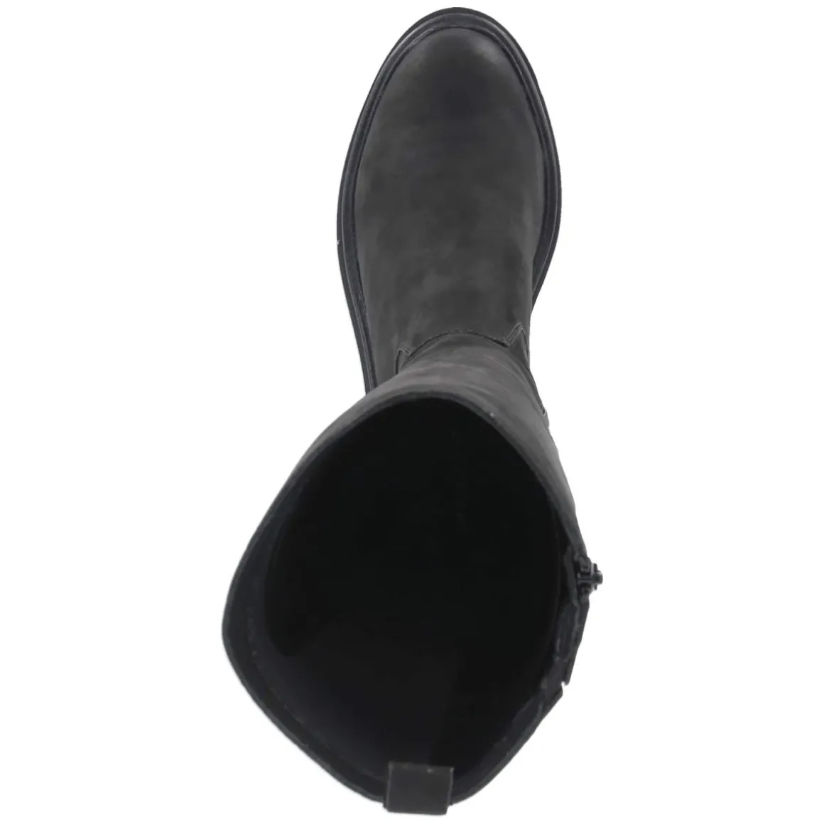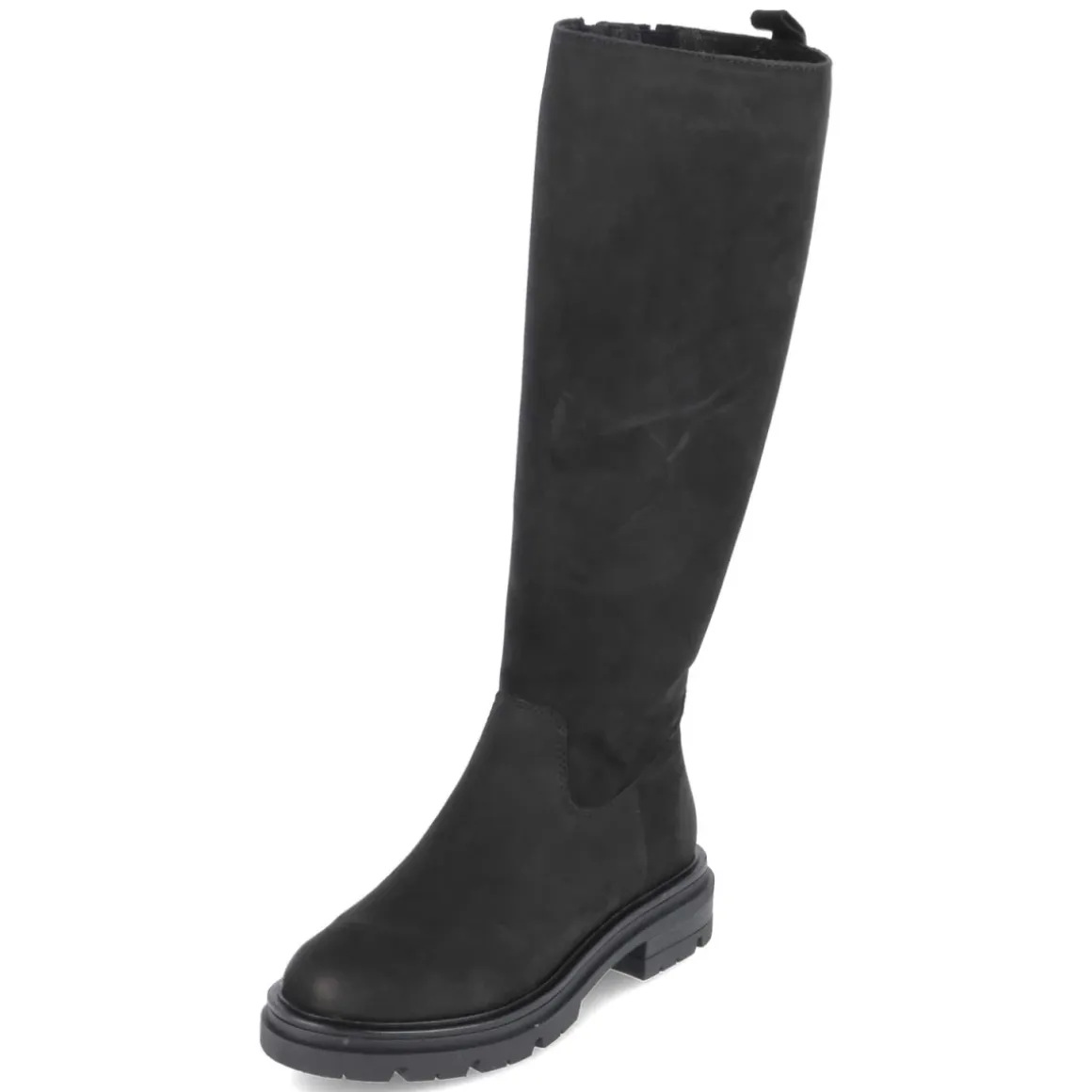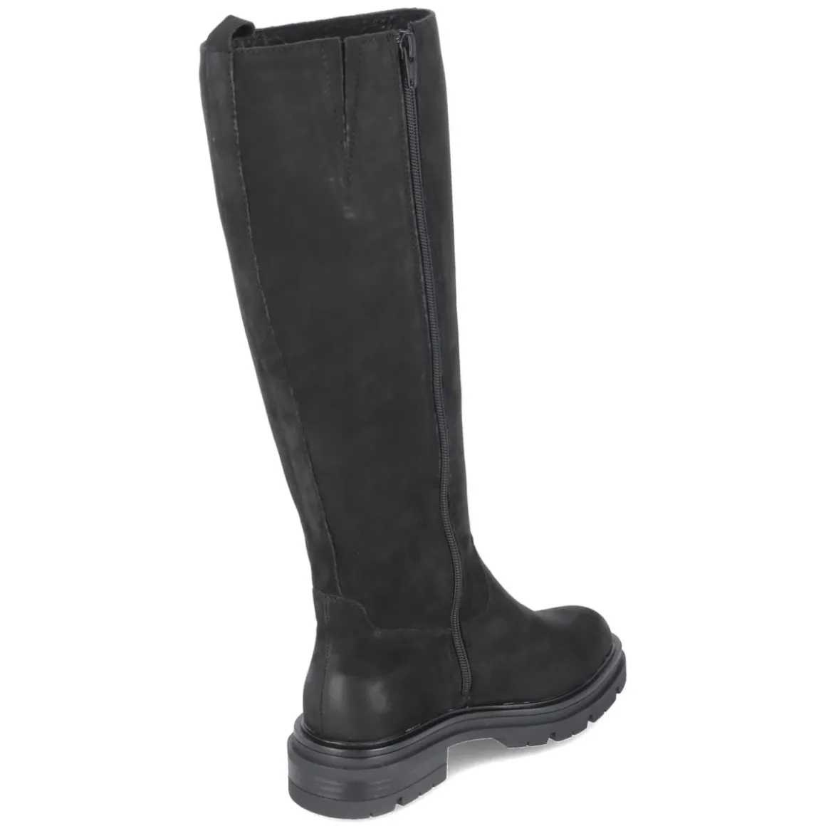 Der Stiefel von Fräulein Frida setzt auf zeitlose Eleganz in tiefem Schwarz und eine Form, die alltagstauglichen Komfort mit femininer Silhouette verbindet. Das Obermaterial aus Rauleder zeigt eine samtige Oberfläche, die dem Look Tiefe verleiht. Ein 4,5 cm hoher Blockabsatz sorgt für stabilen Halt, die flexible, rutschfeste Profilsohle unterstützt bei jedem Schritt. Innen umschließt ein leichtes Futter die Beine angenehm an kühlen Tagen, die Decksohle aus Leder überzeugt mit wertigem Tragegefühl. Praktisch: Reißverschluss, Anziehlasche und ein kleiner Elastikkeil am oberen Schaft für etwas Spiel, dazu ein verstärkter Fersenbereich. Mit rund zulaufender Spitze und einem Schaft von ca. 39 cm Höhe bei 36 cm Umfang passt das Modell zu vielen Looks und fällt größengetreu aus. Modetipp: Zu Midikleid, Strick und Wollmantel entsteht ein moderner Kontrast; alternativ zu Skinny-Jeans und Oversize-Blazer für einen urbanen Auftritt.