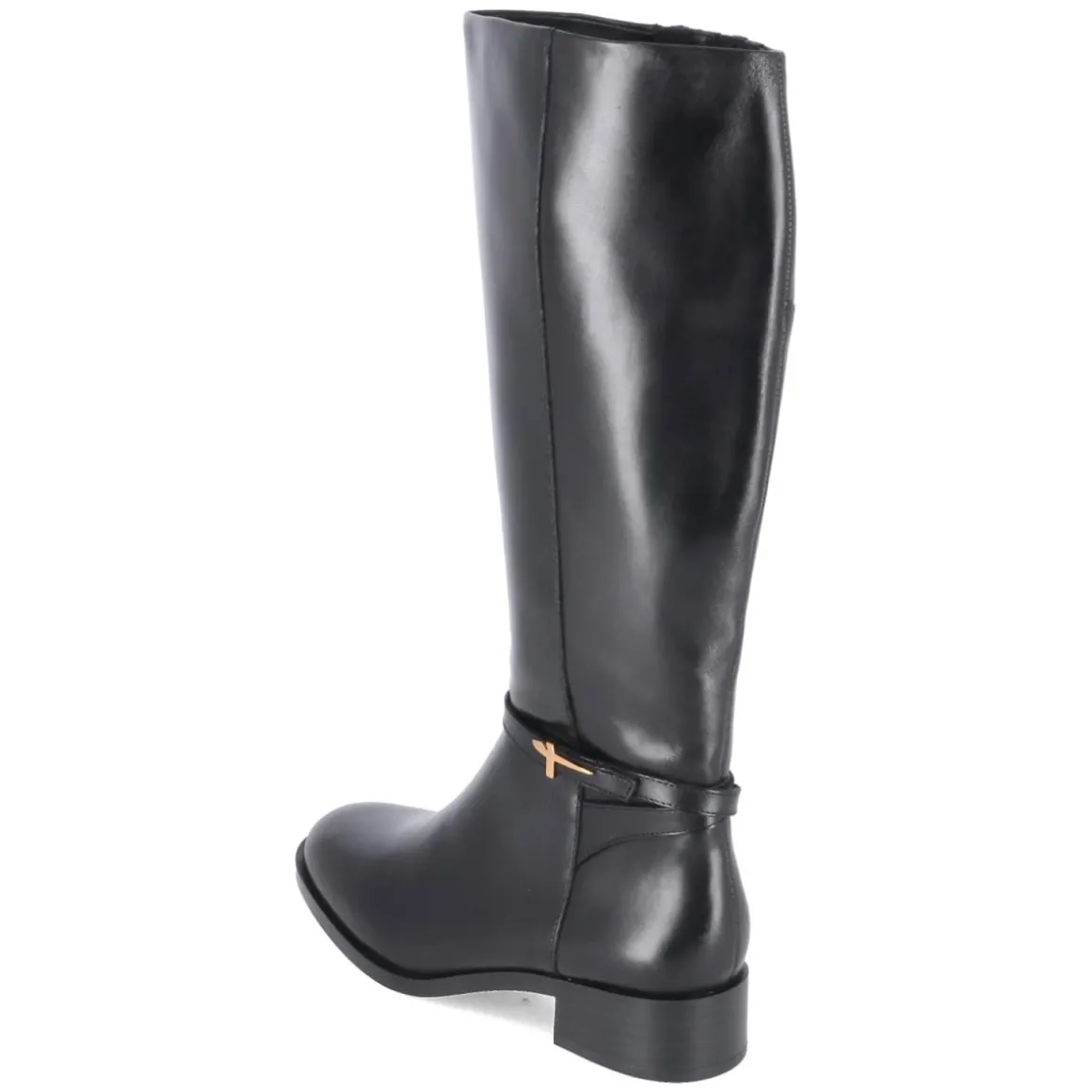 Dieser Damen-Stiefel von Tamaris vereint zeitlose Optik mit funktionalen Details. Schwarzes Glattleder in langlebiger Qualität trifft auf eine runde Spitze und einen 4 cm hohen Blockabsatz, der Stabilität und einen sicheren Auftritt bietet. Das gepolsterte Fußbett und die textile Decksohle sorgen für angenehmen Komfort, während die flexible, rutschfeste Laufsohle bei jedem Schritt unterstützt. Dank praktischem Reißverschluss gelingt das An- und Ausziehen mühelos; der Schaft misst ca. 38 cm in der Höhe und ca. 36 cm im Umfang. Ein Knöchelriemen mit goldenem Logo setzt einen edlen Akzent. Der Stiefel fällt normal aus und lässt sich vielseitig kombinieren – von Office bis Freizeit. Modetipp: Besonders stimmig zu Midikleid und langem Wollmantel, dazu eine strukturierte Ledertasche für einen ausgeglichenen Look.