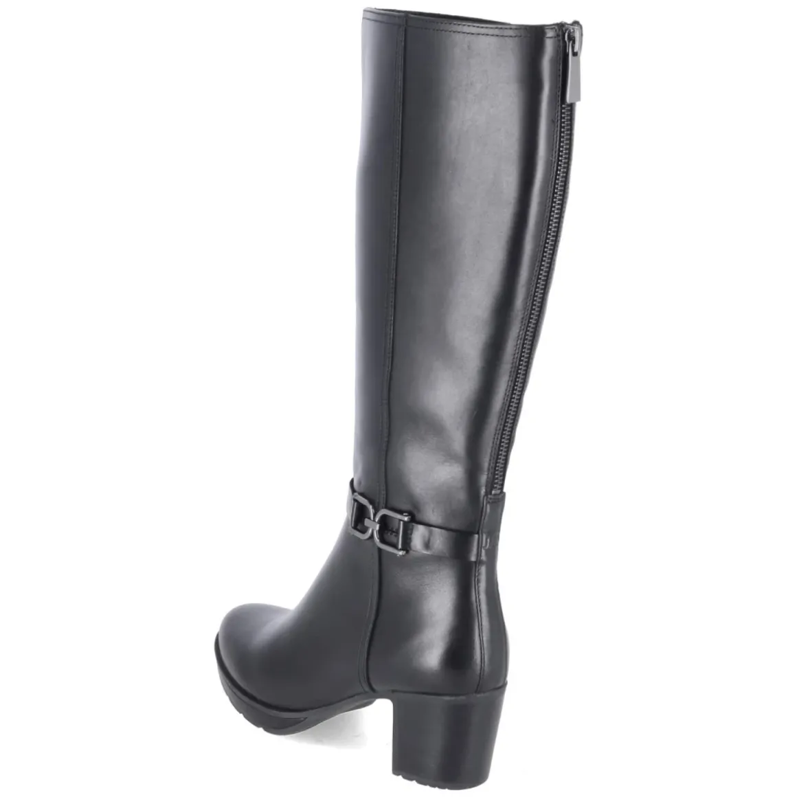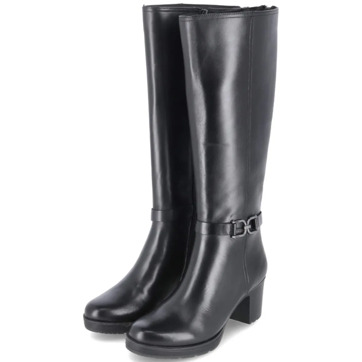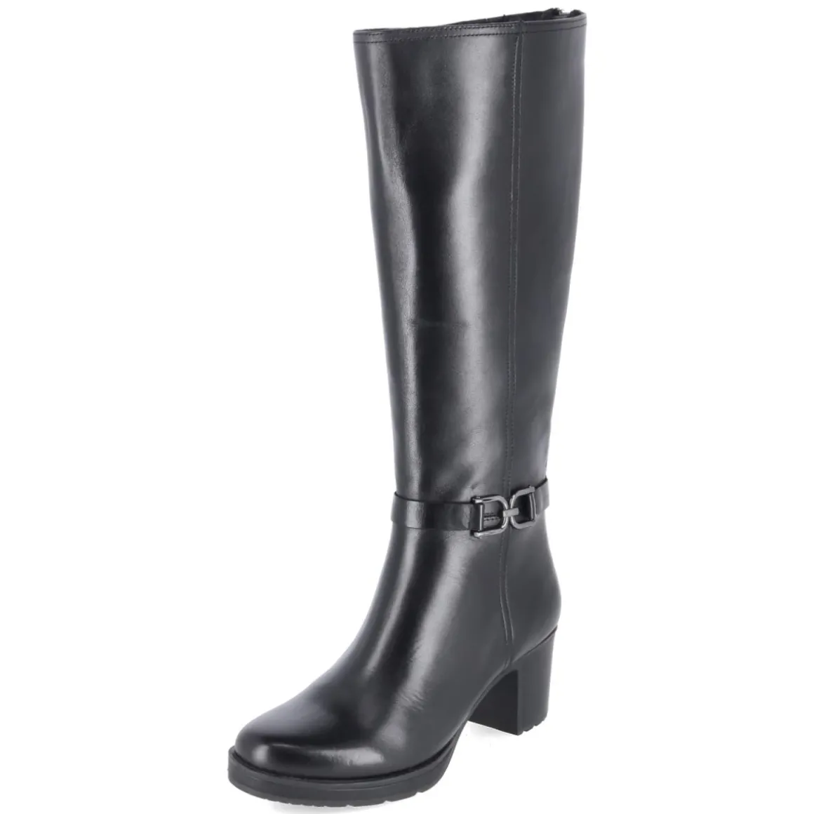 Der Stiefel GLORIA 02 von Josef Seibel vereint elegante Optik mit durchdachtem Komfort. Glattes, langlebiges Echtleder in tiefem Schwarz trifft auf einen 6,5 cm hohen Blockabsatz, der Stabilität und eine harmonische Silhouette bietet. Die runde Schuhspitze und das gepolsterte Fußbett sorgen für ein angenehmes Tragegefühl, unterstützt von einer flexiblen, rutschfesten Laufsohle. Der Reißverschluss erleichtert den Einstieg, während der Varioschaft mit zusätzlichem Waden-Reißverschluss den Umfang um ca. 10 cm erweitert und so unterschiedlichen Passformen gerecht wird. Der Schaft misst etwa 38 cm in der Höhe und ca. 36 cm im Umfang. Ein Knöchelriemen mit Zierschnalle setzt einen edlen Akzent. Der Schuh fällt normal aus und punktet mit einer textilen Decksohle für sanften Kontakt. Modetipp: Mit Midikleid aus Strick und langem Wollmantel entsteht ein zeitloser Look für Büro und Abendprogramm.