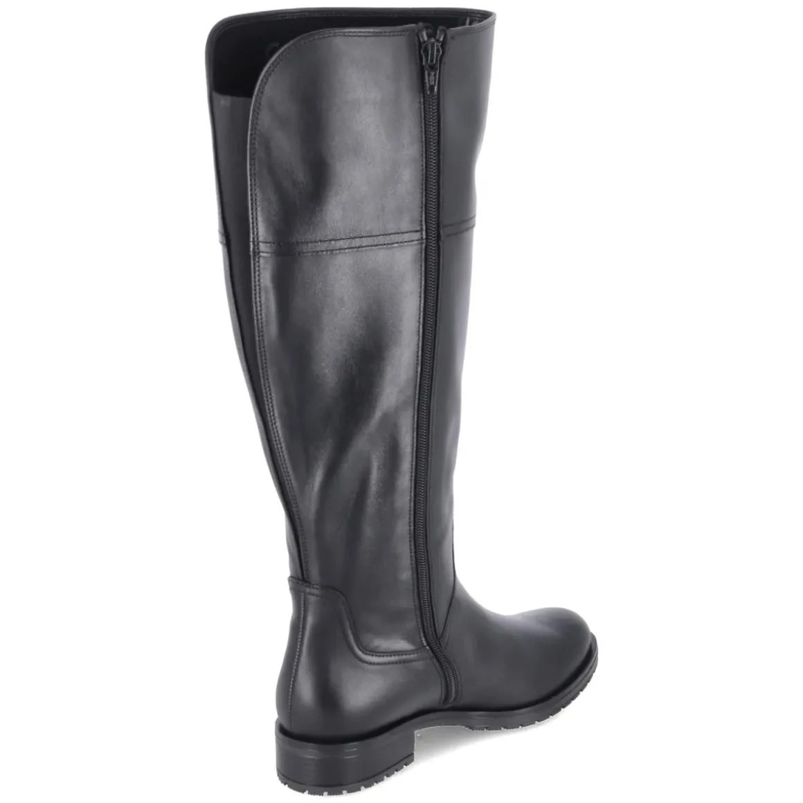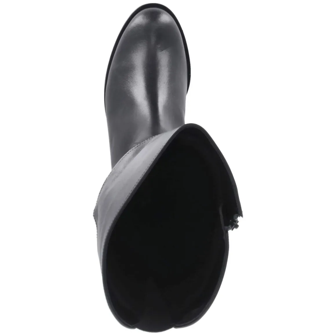 Der Damenstiefel von Gabor vereint zeitlose Eleganz mit komfortabler Ausstattung. Langlebiges Echtleder in schwarzem Glattleder sorgt für einen edlen Look und robuste Haltbarkeit, während die flexible, griffige Laufsohle sicheren Tritt bietet. Der Blockabsatz mit 3,5 cm Höhe und die runde Schuhspitze unterstützen ein entspanntes Abrollen. Der Schaft in XL mit ca. 40 cm Höhe und 40 cm Umfang passt sich dank großem Elastikkeil am hinteren Schaft angenehm an. Ein seitlicher Reißverschluss erleichtert das Anziehen. Innen punkten gepolstertes Fußbett, Textil-Decksohle, verstärkter Fersenbereich und das praktische Wechselfußbett für individuelle Einlagen. Die Passform fällt normal aus und begleitet zuverlässig durch Alltag und Office. Modetipp: Zu Midikleid und Wollmantel mit blickdichter Strumpfhose kombinieren; Ton-in-Ton-Schwarz und goldfarbene Accessoires unterstreichen den klassischen Charakter.