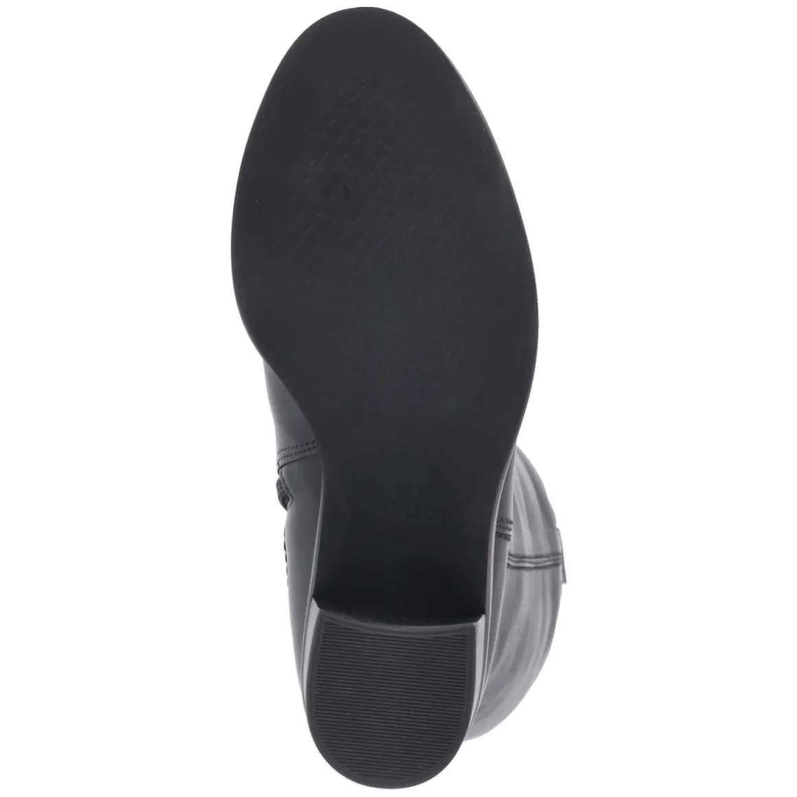 Dieser kniehohe Gabor Stiefel vereint zeitloses Design mit hohem Tragekomfort. Weiches Glattleder formt eine elegante Silhouette mit rund zulaufender Spitze, während der 5 cm hohe Blockabsatz für souveränen Stand sorgt. Der seitliche Reißverschluss und die Anziehlasche erleichtern den Einstieg, der verstärkte Fersenbereich stabilisiert jeden Schritt. Ein gepolstertes Fußbett mit textiler Decksohle ergänzt die flexible, rutschfeste Laufsohle für zuverlässigen Grip auf wechselnden Untergründen. Der Schaft misst ca. 40 cm in der Höhe und ca. 35 cm im Umfang, die Passform fällt normal aus. Als vielseitiger Begleiter fügt sich der Stiefel mühelos in Business- wie Freizeitlooks ein. Modetipp: Zu Midikleid und Wollmantel entsteht ein harmonischer, gestreckter Look, der den Blockabsatz elegant zur Geltung bringt und die klare Linienführung des Stiefels betont.