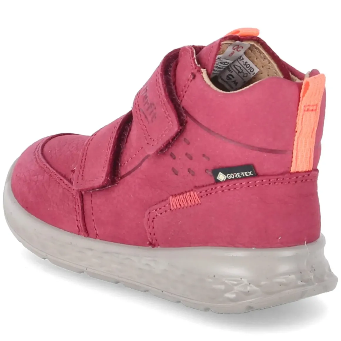 Die Stiefeletten BREEZE von Superfit vereinen kindgerechten Komfort mit robuster Funktionalität. Leuchtend rotes Rauleder und neonorange Anziehlaschen setzen fröhliche Akzente, während die GORE‑TEX Ausstattung für verlässlichen Nässeschutz und Atmungsaktivität sorgt – ideal an kühlen, feuchten Tagen. Ein leichtes Futter hält angenehm warm, ohne zu beschweren. Der 2 cm hohe Blockabsatz und die flexible Laufsohle unterstützen natürliche Bewegungen, die runde Spitze bietet Zehenfreiheit. Praktische Klettverschlüsse erleichtern das An- und Ausziehen, der gepolsterte Einstieg schont empfindliche Knöchel. Verstärkungen an Ferse und Spitze erhöhen die Langlebigkeit beim Toben. Die textile Decksohle sitzt auf einem herausnehmbaren Wechselfußbett und der Schnitt fällt normal aus – unkompliziert in der Größenwahl. Modetipp: Zum kräftigen Rot passen Denim und neutrale Töne wie Grau oder Creme, ein farblich abgestimmtes Mütze‑Schal‑Set rundet den Look ab.
