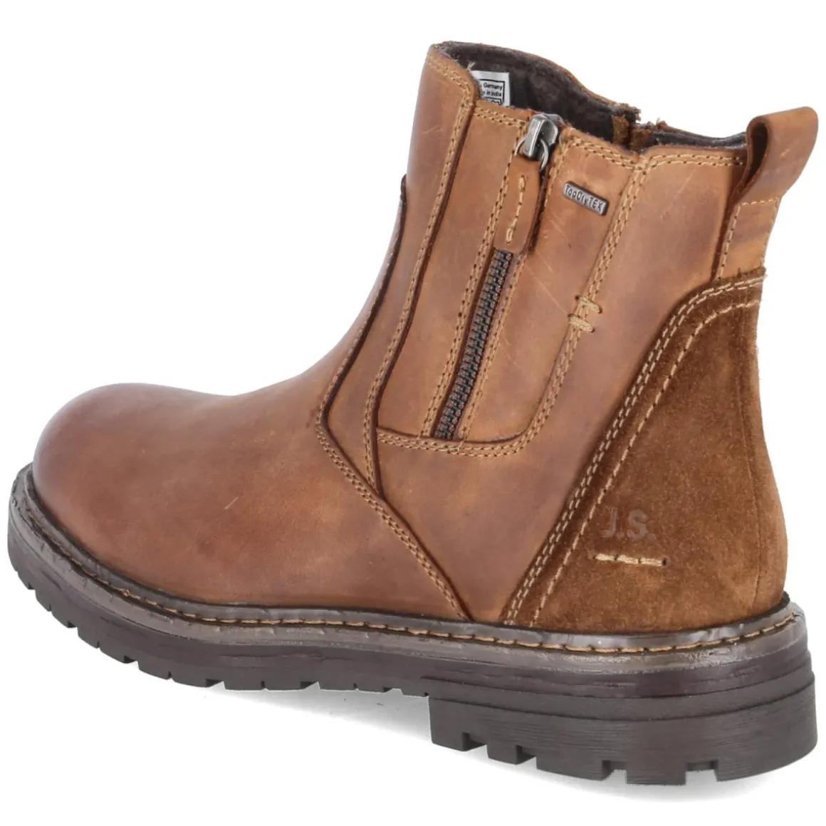 Die Stiefeletten CURTIS 51 von Josef Seibel verbinden urbane Eleganz mit funktionaler Ausstattung. Das Obermaterial aus geschmeidigem Rauleder in warmem Braun zeigt eine zeitlose Chelsea-Silhouette, ergänzt durch praktische Reißverschlüsse und Anziehlasche für unkompliziertes An- und Ausziehen. Wasserfest und wasserabweisend zugleich, unterstützt von atmungsaktiven Eigenschaften, bleibt das Klima im Schuh angenehm – ein leichtes Futter sorgt an kühlen Tagen für zusätzlichen Komfort. Der 4 cm hohe Blockabsatz bietet Stabilität im Alltag, die flexible Laufsohle fördert ein natürliches Abrollen, während der verstärkte Fersenbereich und die runde Spitze den Tragekomfort erhöhen. Die textile Decksohle liegt weich am Fuß, das Wechselfußbett ermöglicht individuelle Einlagen. Der Größenhinweis fällt normal aus und erleichtert die Wahl. Modetipp: Mit dunkler Chino, Stricksweater und Wollmantel entsteht ein souveräner Look zwischen Büro und Freizeit.
