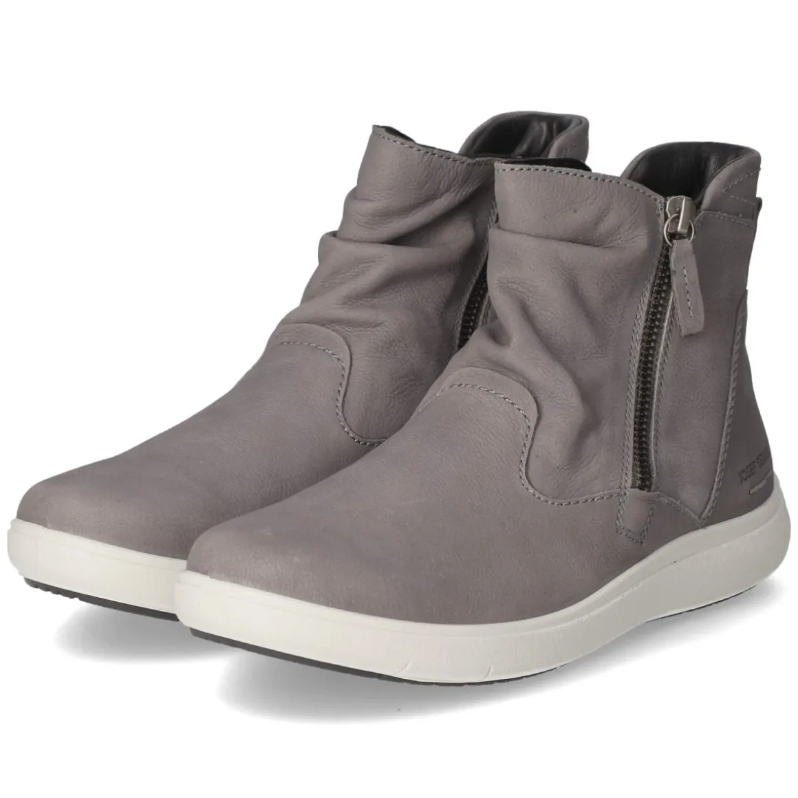 Die Stiefeletten MEGAN 12 von Josef Seibel verbinden in dezentem Grau puristische Linien mit durchdachter Funktion. Das Obermaterial aus Glattleder punktet als atmungsaktives Echtleder, die runde Spitze sorgt für entspannten Zehenraum. Praktische Reißverschlüsse ermöglichen ein zügiges An- und Ausziehen, während der verstärkte Fersen- und Zehenbereich verlässlichen Halt gibt. Eine flexible Laufsohle unterstützt natürliche Abrollbewegungen im Alltag. Das komfortable Wechselfußbett lässt sich gegen eigene Einlagen tauschen, die pflegeleichte Synthetik-Decksohle ergänzt den angenehmen Tragekomfort. Leichte Raffung am Schaft verleiht dem cleanen Design einen soften Twist. Der Größenausfall entspricht der üblichen Größe. Modetipp: Zur grauen Nuance passen Cropped-Jeans und ein cremefarbener Strickpullover ebenso wie ein Midikleid in Beerentönen und Wollmantel – Ton-in-Ton mit silbernen Accessoires wirkt der Look besonders modern.