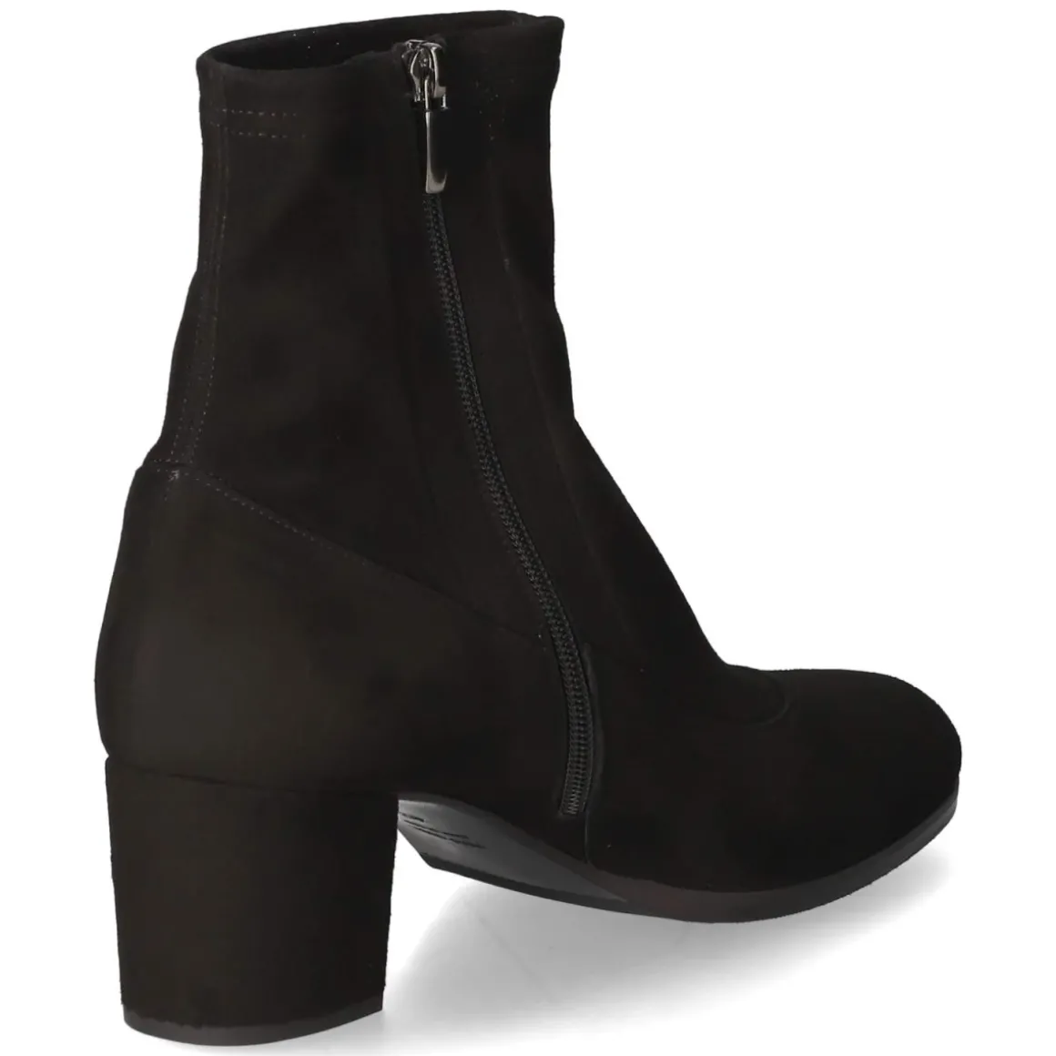 Die schwarzen Stiefeletten von 42Plus verbinden italienische Handwerkskunst mit alltagstauglichem Komfort. Das sehr weiche Rauleder begeistert mit samtiger Oberfläche und legt sich edel um den Fuß, während die runde Spitze und der verstärkte Zehen- und Fersenbereich für angenehmen Raum und Formstabilität sorgen. Der 5 cm hohe Blockabsatz bietet sicheren Stand und eine feminine Silhouette, die flexible, rutschhemmende Laufsohle begleitet zuverlässig durch urbane Wege. Dank seitlichem Reißverschluss gelingt der bequeme Einstieg im Handumdrehen. Leichtes Lederfutter und die hautfreundliche, leicht gepolsterte Lederdecksohle umschmeicheln den Fuß und unterstützen entspanntes Gehen. Das Modell fällt normal aus und überzeugt mit hochwertiger Verarbeitung Made in Italy. Modetipp: Zu Cropped-Jeans und einem grob gestrickten Cardigan entsteht ein lässig-eleganter Look, der tagsüber und am Abend funktioniert.