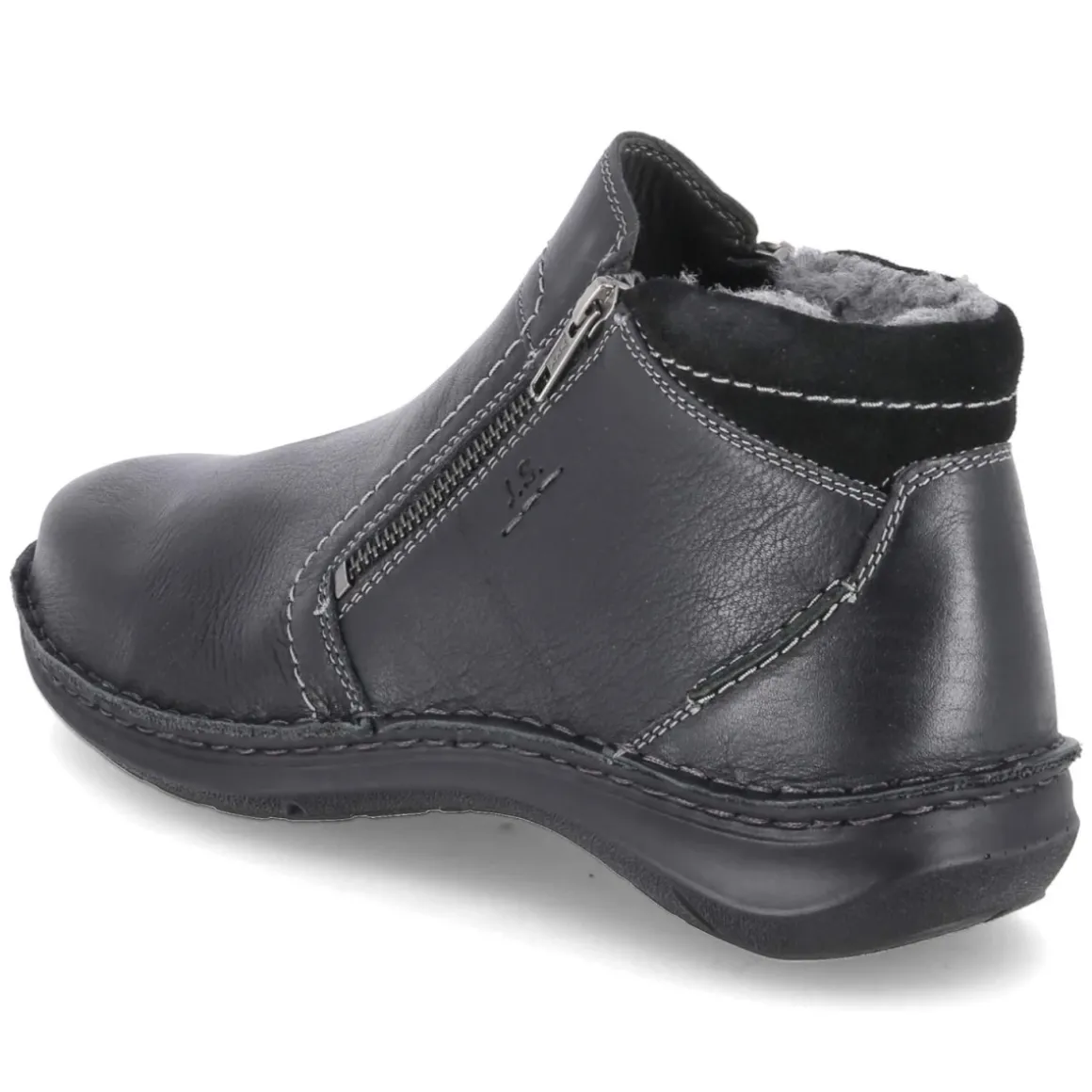 Der NEW ANVERS 04 von Josef Seibel präsentiert sich als ausdrucksstarke Herren-Stiefelette in tiefem Schwarz, gefertigt aus robustem Echtleder mit edler Glattleder-Optik. Zwei seitliche Reißverschlüsse erleichtern den Einstieg, während der gepolsterte Schaft und das weich unterlegte, auswechselbare Fußbett für angenehme Dämpfung sorgen. Die karreeförmige Spitze verleiht dem Modell eine markante, moderne Linie. Warmfutter hält zuverlässig die Wärme, die flexible Laufsohle bietet Traktion im Alltag, und der verstärkte Fersenbereich erhöht die Stabilität. Ziernähte setzen dezente Akzente, die textile Decksohle ergänzt den Komfort. Das Modell fällt größengetreu aus und begleitet souverän durch die kühle Saison. Modetipp: Für einen smarten City-Look mit Wollmantel, Strukturstrick und Raw Denim kombinieren; ein schmaler Ledergürtel in Schwarz greift die klare Form der Stiefelette stilvoll auf.