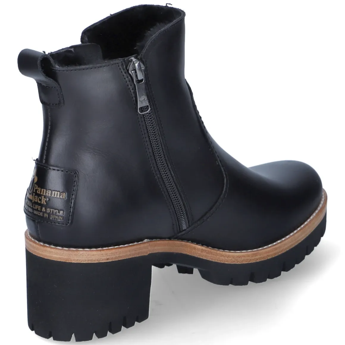 Die Stiefeletten PAULINE IGLOO von Panama Jack kombinieren urbanes Design mit verlässlicher Funktion. Schwarzes Glattleder und eine runde Schuhspitze verleihen einen zeitlosen Look, während der 6,5 cm hohe Blockabsatz sicheren Stand bietet. Innen sorgt warmes Lammfellfutter für behagliche Wärme, zugleich bleibt der Schuh dank atmungsaktiver Eigenschaften angenehm zu tragen. Wasserfest und zusätzlich wasserabweisend schützt das Modell zuverlässig vor Nässe. Praktische seitliche Reißverschlüsse erleichtern den Einstieg, die lederne Decksohle unterstützt ein wertiges Tragegefühl. Der Passformhinweis „fällt normal aus“ macht die Größenauswahl unkompliziert. Modetipp: Zu cropped Straight-Jeans, wolligem Oversize-Mantel und einer Leder-Umhängetasche entsteht ein moderner Winter-Look, der von einem grob gestrickten Schal stilvoll abgerundet wird.