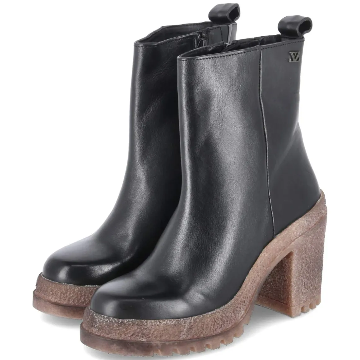 Die Stiefeletten ROWAN von LAZAMANI verbinden charakterstarke Eleganz mit Komfort. Schwarzes Glattleder in langlebiger Echtleder-Qualität trifft auf eine moderne Silhouette mit runder Spitze. Der 9,5 cm hohe Blockabsatz setzt ein stilvolles Statement und bleibt dank rutschfester Profilsohle souverän bei jedem Schritt. Eine hautfreundliche Lederdecksohle und das angenehme Futter erhöhen den Tragekomfort, während Reißverschluss, Anziehlasche und ein kleiner Elastikeinsatz am Schaft das Anziehen erleichtern und Beweglichkeit schenken. Das Modell fällt normal aus und überzeugt als vielseitiger Begleiter für Erwachsene, die Wert auf zeitlose Ästhetik legen. Modetipp: Für einen markanten City-Look zu Cropped-Jeans, Oversize-Blazer und einer strukturierten Crossbody-Tasche kombinieren – so kommt die klare, moderne Optik ideal zur Geltung.