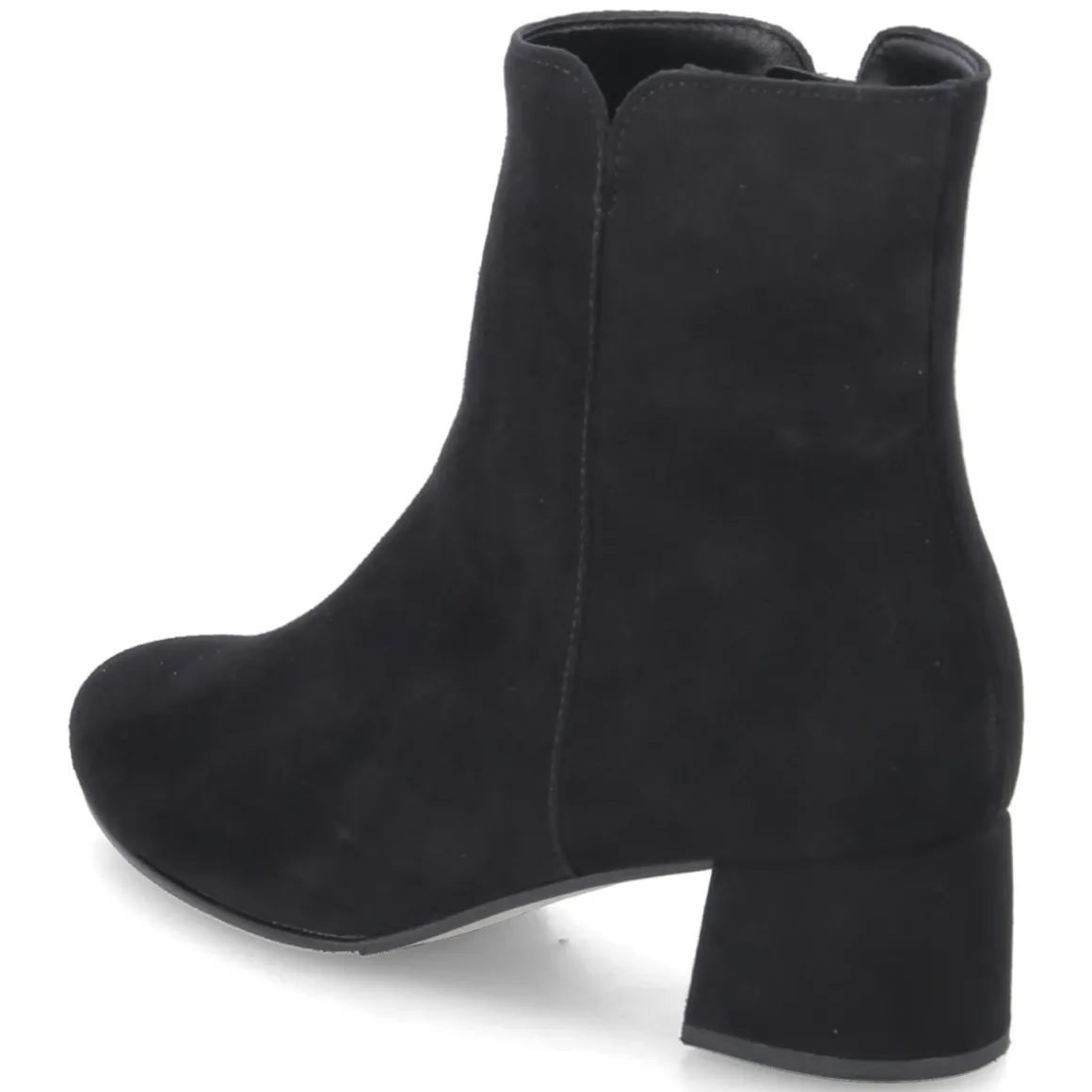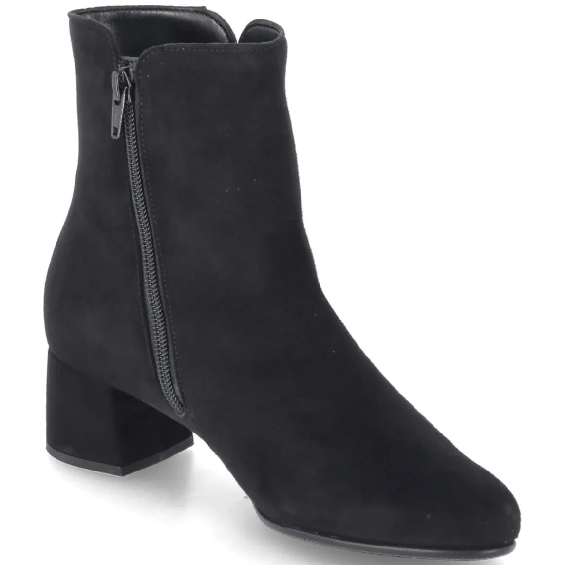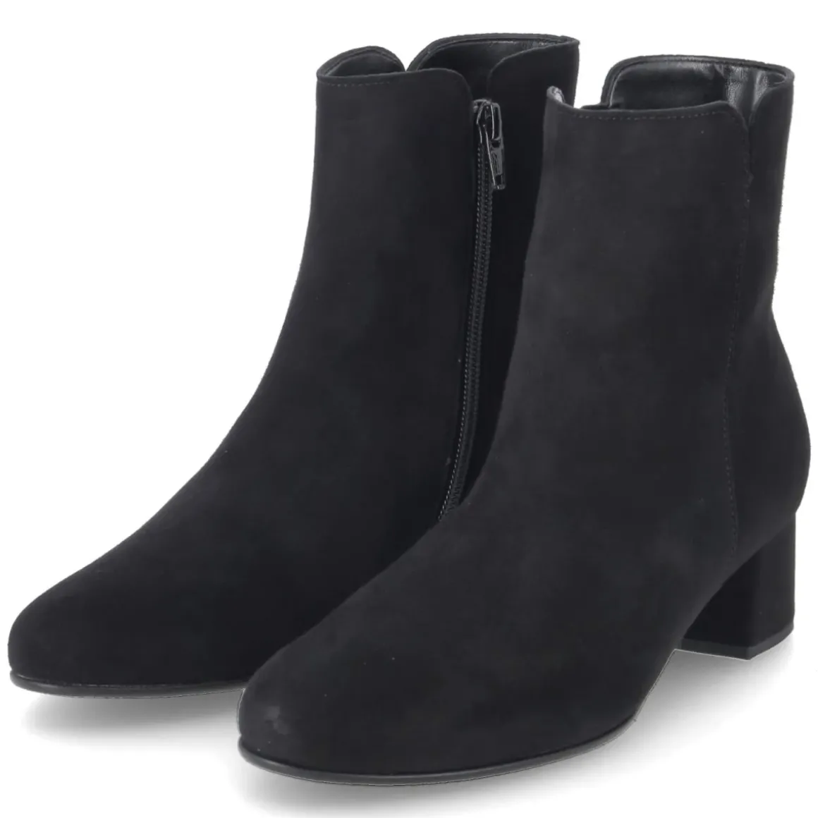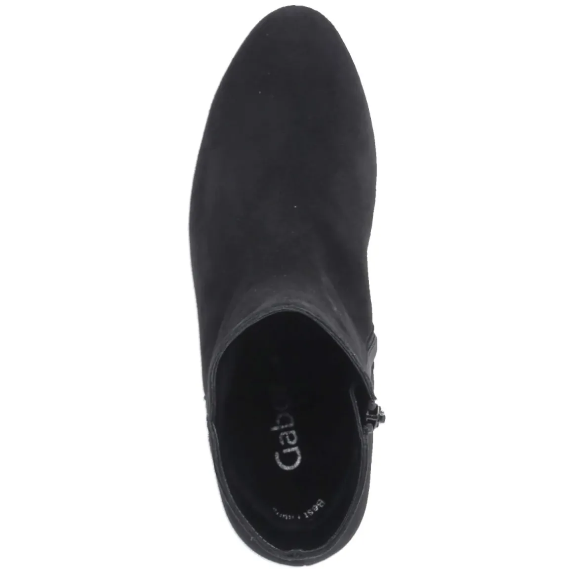 Die schwarzen Stiefeletten von Gabor verbinden zeitlose Schlichtheit mit spürbarem Komfort. Weiches Rauleder mit samtiger Oberfläche umschmeichelt den Fuß, die runde Spitze sorgt für eine harmonische Silhouette. Der stabile Blockabsatz mit 4,5 cm verleiht Höhe, ohne auf Trittsicherheit zu verzichten. Eine flexible, griffige Laufsohle unterstützt jeden Schritt, während der bequeme Reißverschlusseinstieg für schnelles An- und Ausziehen steht. Ein kleiner, seitlicher Vent am Schaft setzt ein dezentes Detail und unterstreicht das reduzierte Design. Dank Decksohle aus Textil und durchdachter Passform eignet sich das Modell für den Alltag ebenso wie für den Büroauftritt. Das Modell fällt schmaler aus; es empfiehlt sich, eine Nummer größer zu wählen. Modetipp: Zu dunkler Denim und einem langen Wollmantel entsteht ein eleganter City-Look, blickdichte Strumpfhosen runden Outfits mit Kleidern ab.