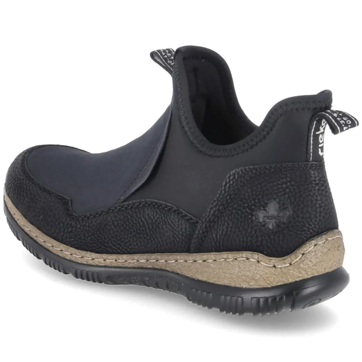 Diese schwarzen Rieker Stiefeletten verbinden urbane Lässigkeit mit cleverem Komfort. Der moderne Material-Mix aus Textil und Synthetik sorgt für eine spannungsvolle Oberfläche und gute Formstabilität, während die runde Schuhspitze angenehm Platz bietet. Ohne Verschluss gestaltet, gelingen Ein- und Ausstieg besonders unkompliziert, ideal für schnelle Alltagsmomente. Die textile Decksohle trifft auf die beste Memory-Foam-Fußbettung von Rieker und schafft ein weiches, druckentlastendes Tragegefühl, das den Fuß angenehm umschließt. Die sportliche Optik bringt Dynamik in Freizeit- und Office-Looks gleichermaßen. Der Schnitt fällt normal aus und trifft damit den gängigen Größenstandard. Für Damen entworfen und auf die Bedürfnisse Erwachsener abgestimmt, entsteht ein vielseitiger Begleiter für viele Saisons. Modetipp: In Kombination mit Cropped-Jeans, feinem Rollkragen und einem strukturierten Wollmantel entsteht ein moderner Kontrast aus sportivem Finish und eleganter Silhouette.