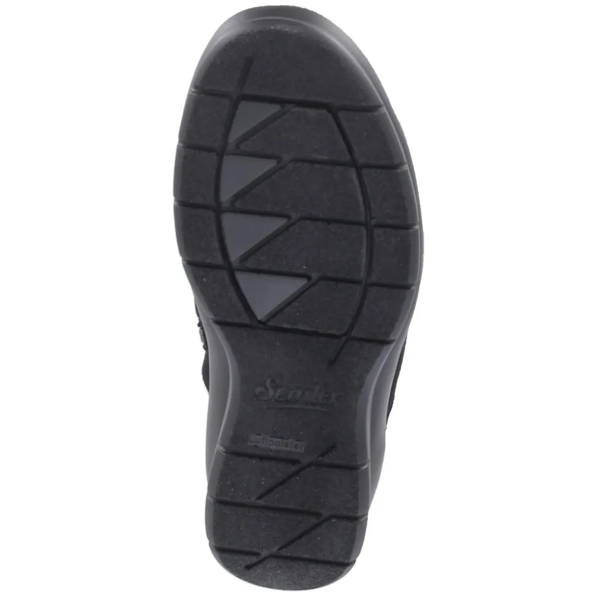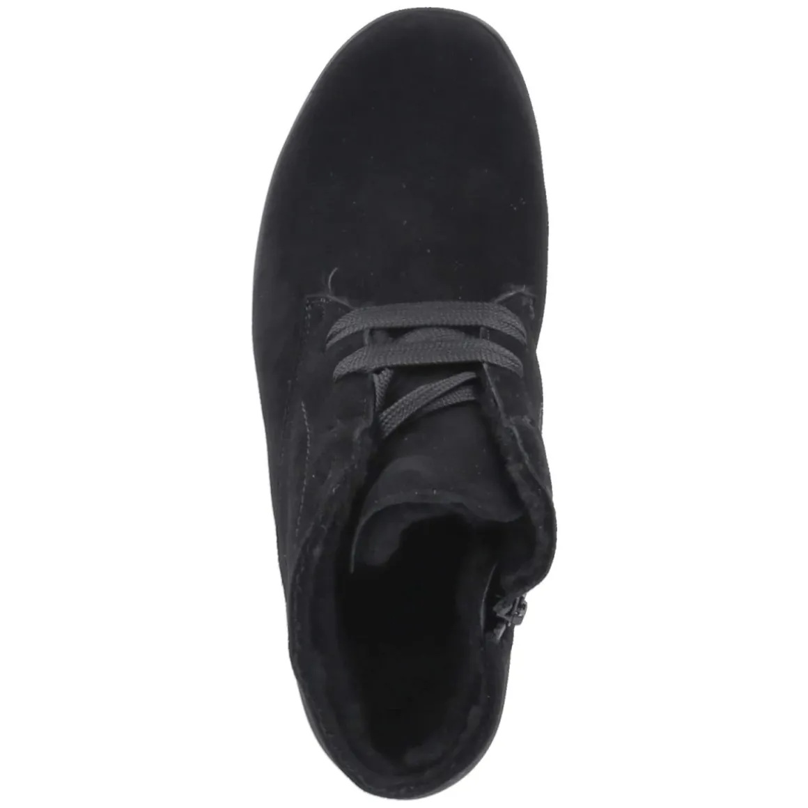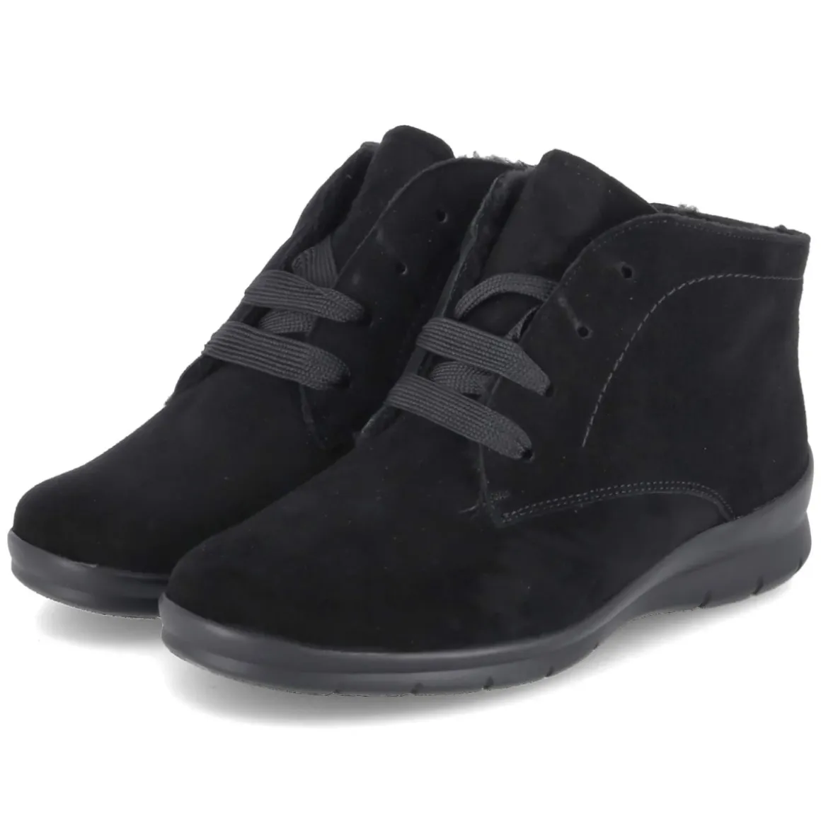 Die Stiefeletten XENIA von Semler verbinden Komfort und zeitlosen Stil. Das schwarze Rauleder mit samtiger Oberfläche verleiht dem Modell eine edle Tiefe, während die runde Schuhspitze und das geringe Gewicht für entspannte Schritte im Alltag stehen. Innen sorgt ein weiches Warmfutter für behagliche Temperaturen an kalten Tagen. Praktisch und elegant zugleich ist die Kombination aus Schnürung und seitlichem Reißverschluss, die das An- und Ausziehen besonders bequem macht. Das Wechselfußbett ermöglicht individuelles Anpassen oder das Tragen eigener Einlagen, die textile Decksohle ergänzt den sanften Tragekomfort. Dank normal ausfallender Passform gelingt die Größenwahl unkompliziert. Modetipp: Der monochrome Stil der XENIA harmoniert hervorragend mit einem wolligen Mantel in Kamel oder Grau und cropped Denim; ein schwarzer Lederbeutel rundet den cleanen Look smart ab.