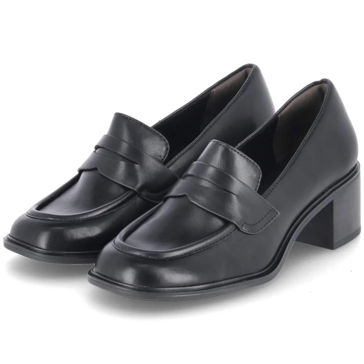 Der Trotteur von Tamaris verbindet edle Optik mit komfortabler Alltagstauglichkeit. Das schwarze Obermaterial aus Synthetik ist bewusst vegan gewählt und zeigt sich mit runder Schuhspitze, elegantem Zierriemen über dem Spann und klassischer Wulstnaht auf dem Schuhdeck. Der 6 cm hohe Blockabsatz sorgt für einen souveränen Stand, während das weich gepolsterte Fußbett und der Einstieg mit Fersenpolster angenehme Stunden auf den Beinen ermöglichen. Als praktischer Slipper kommt das Modell ohne Verschluss aus und fällt in der Größe normal aus. Die Synthetik-Decksohle rundet die pflegeleichte Konstruktion ab. Ob fürs Office oder den Abendtermin, dieser Damen-Schuh setzt dezente Statements und bleibt zugleich bequem. Modetipp: Besonders modern wirkt der Trotteur zu verkürzter Zigarettenhose und fließender Bluse; ein schmaler Gürtel in Schwarz greift die klare Linienführung stilsicher auf.