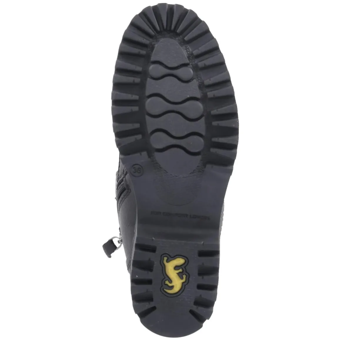 Das Modell Winterboots von Salamander vereint robuste Funktion und klare Ästhetik. Schwarzes Glattleder und eine runde Spitze geben dem Design eine zeitlose Note, während der 4 cm hohe Blockabsatz sicheren Stand bietet. Schnürsenkel ermöglichen die individuelle Weitenregulierung, der seitliche Reißverschluss erleichtert den Einstieg. Für Komfort sorgen gepolsterter Schaft, verstärkte Ferse und eine Textil-Decksohle; das weiche Lammfellfutter hält angenehm warm. Auf glatten Wegen überzeugt die rutschfeste Profilsohle mit zuverlässigem Grip. Die Passform fällt normal aus und eignet sich für den täglichen Stadtalltag ebenso wie für winterliche Spaziergänge. Modetipp: Zu Wollmantel und Strickkleid entsteht ein eleganter Kontrast, alternativ rundet die Stiefelette eine Steppjacke mit gerader Denim stilvoll ab.