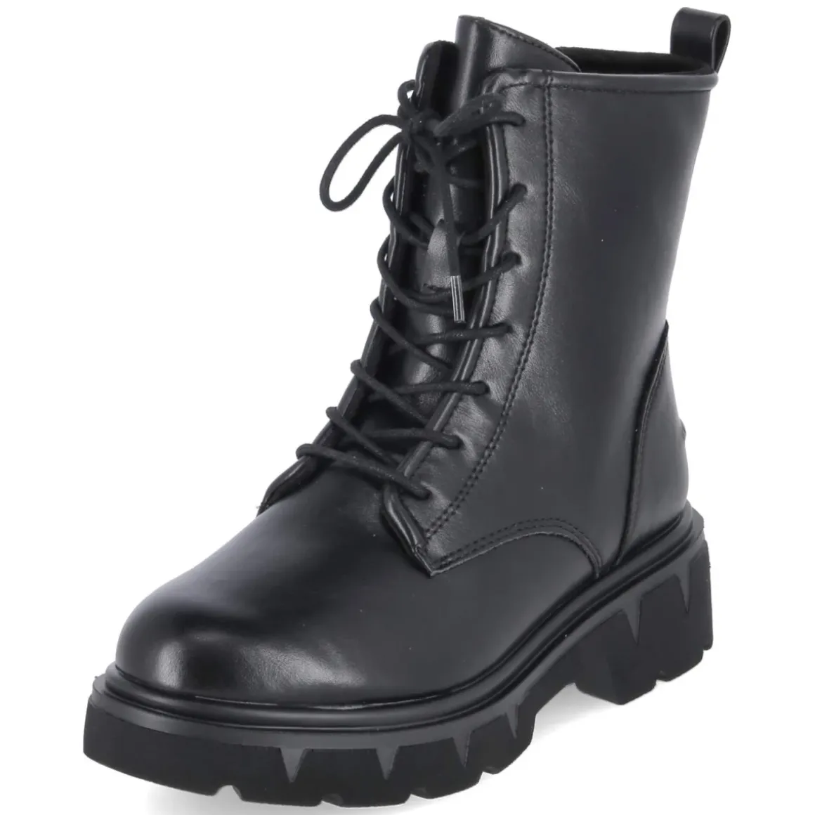 Ein Winterboot, der Stil und Funktion verbindet: Marco Tozzi präsentiert ein schwarzes Damenmodell mit 5 cm hohem Blockabsatz, das zuverlässig Halt und eine elegante Silhouette liefert. Das synthetische Obermaterial ist pflegeleicht, die runde Schuhspitze sorgt für angenehme Zehenfreiheit. Innen verwöhnt warmes Futter, während die textile Decksohle sanft polstert. Der Schaft misst ca. 15 cm in der Höhe und ca. 24 cm im Umfang, unterstützt von einer verstärkten Ferse und einer Anziehlasche. Schnürsenkel ermöglichen die Feinjustierung, der seitliche Reißverschluss das schnelle An- und Ausziehen. Die starke Profilsohle bietet Trittsicherheit, das geringe Gewicht erhöht den Komfort im Alltag. Aus veganen Materialien gefertigt und in der Passform verlässlich: fällt normal aus. Modetipp: Mit Wollmantel, grobem Strickschal und gerippten Strumpfhosen entsteht ein cleaner City-Winterlook mit moderner Kante.