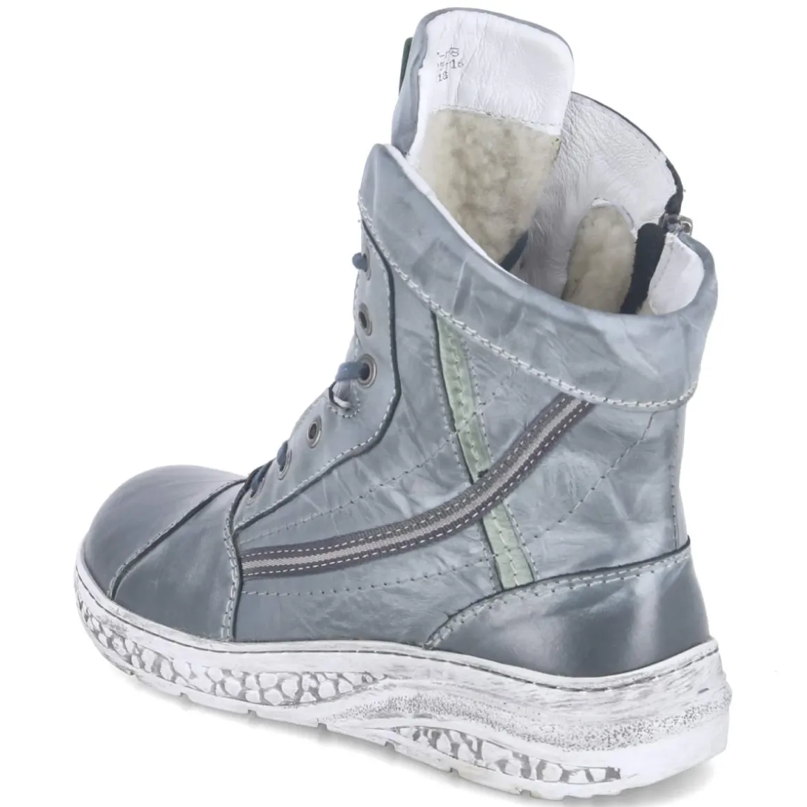Diese Damen-Winterboots von Krisbut verbinden lässige Optik im Used-Look mit zuverlässiger Funktion für kalte Tage. Das Obermaterial aus robustem Glattleder zeigt markante Ziernähte, eine verstärkte Zehen- und Fersenkappe sowie eine runde Schuhspitze. Innen sorgt ein warmes Futter für wohlige Wärme, während der gepolsterte Einstieg und das gepolsterte, herausnehmbare Wechselfußbett den Komfort erhöhen. Die Decksohle aus Textil liegt angenehm am Fuß, die flexible Profilsohle gibt Halt auf winterlichen Wegen. Praktisch: Schnürsenkel erlauben individuelle Anpassung, der seitliche Reißverschluss erleichtert den Einstieg. Die Passform fällt normal aus; die blaue Farbe verleiht dem Used-Look zusätzliche Tiefe. Modetipp: Besonders stimmig zu gestrickten Midi-Kleidern und dicken Wollstrümpfen, dazu ein Oversize-Mantel für einen urbanen Winter-Look.