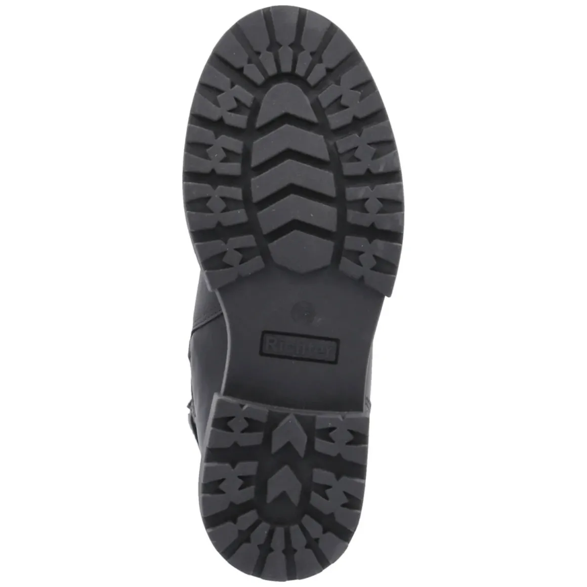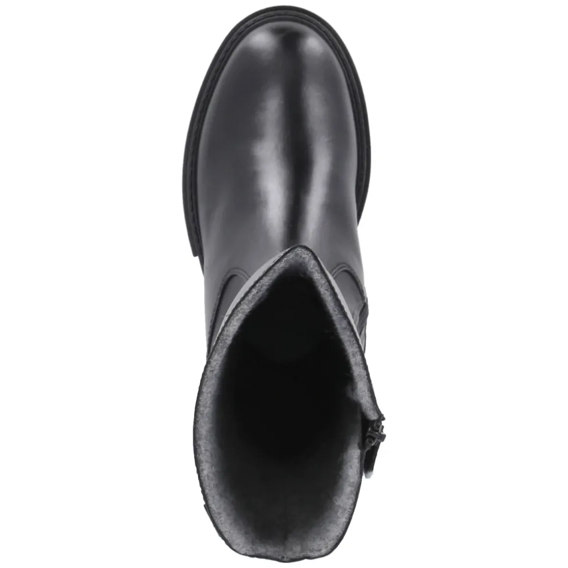 Der Winterstiefel von Richter begleitet Kinder zuverlässig durch kalte Tage: Schwarzes Glattleder trifft auf weiches Warmfutter und eine textile Decksohle für behaglichen Tragekomfort. Das Modell ist wasserfest und atmungsaktiv, sodass Nässe draußen bleibt und ein angenehmes Fußklima erhalten wird. Dank Reißverschluss gelingt der Einstieg mühelos, die runde Schuhspitze bietet Bewegungsfreiheit. Ein 3 cm hoher Blockabsatz und die flexible, rutschhemmende Profillaufsohle sorgen für Stabilität auf winterlichen Wegen, der verstärkte Fersenbereich steigert die Haltbarkeit. Das Wechselfußbett lässt sich bei Bedarf austauschen. Der Stiefel fällt normal aus und eignet sich damit für den täglichen Einsatz von Schule bis Spielplatz. Modetipp: Zu Thermojeans, Strickpullover und Parka entsteht ein lässiger, wetterfester Look.