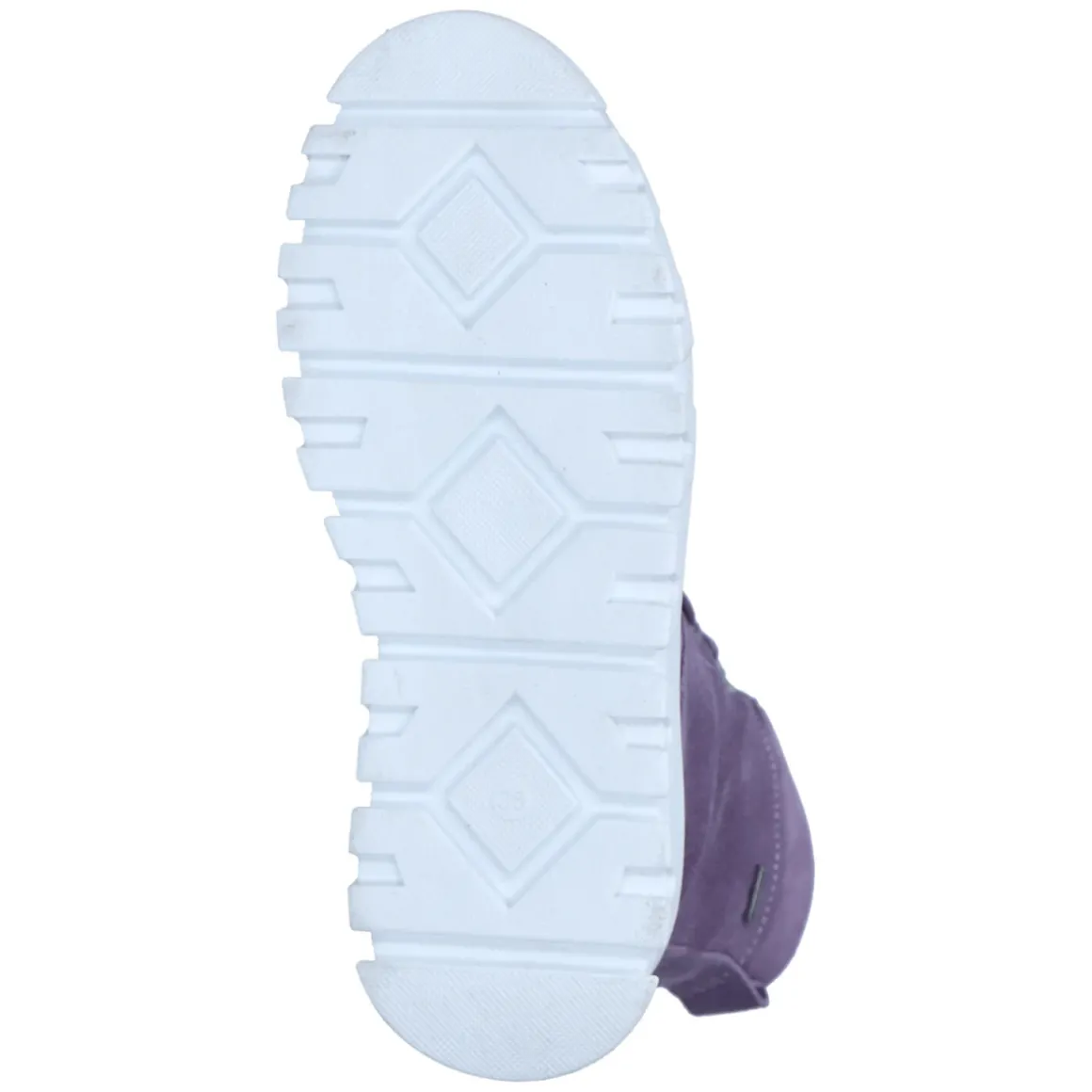Diese Winterstiefeletten von Richter bringen Grundschulkinder warm und sicher durch nasse, kühle Tage. Das robuste Rauleder in lebendigem Lila wird durch modische Ziernähte und dezente Markendetails akzentuiert. Dank RichTEX, wasserfestem Finish und wasserabweisender Oberfläche bleibt Feuchtigkeit draußen, während die atmungsaktive Ausstattung für ein angenehmes Fußklima sorgt. Warmes Fleecefutter und der leicht gepolsterte Einstieg umschmeicheln den Fuß, die textile, leicht gepolsterte und herausnehmbare Decksohle bietet zusätzlichen Komfort. Schnürsenkel erlauben individuelle Anpassung, der seitliche Reißverschluss erleichtert den Einstieg. Die runde Spitze und die flexible, rutschhemmende Laufsohle mit Profil gewährleisten Halt, die 4-cm-Plateau-Sohle isoliert zusätzlich. Fällt normal aus. Modetipp: Lila setzt starke Akzente zu grauen Thermo-Leggings und dunklem Parka; silberne Accessoires unterstreichen den Winterlook.