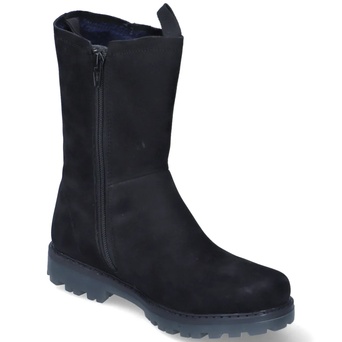 Die Winterstiefeletten NENA von Vado verbinden funktionales Design mit urbanem Look. Schwarzes Rauleder und eine runde Schuhspitze sorgen für zeitlosen Stil, während das VA-TEX-Laminat die Füße zuverlässig wasserfest schützt und zugleich atmungsaktiv bleibt. Ein leichtes, warmes Futter wärmt an kühlen Tagen, ohne aufzutragen. Der bequeme Reißverschlußeinstieg mit zwei Anziehlaschen erleichtert das Hineinschlüpfen, die gepolsterte, wechselbare Textildecksohle erhöht den Tragekomfort im Alltag. Für Halt auf nassen Wegen sorgt die robuste, rutschhemmende Profilsohle; ein stabiler Blockabsatz und der verstärkte Fersenbereich geben zusätzliche Stabilität. Das Modell fällt größengetreu aus und ist ideal für aktive Kinder und Jugendliche. Modetipp: In Kombination mit dunklen Skinny-Jeans, grob gestrickten Socken und einer gesteppten Pufferjacke entsteht ein lässiger Winter-Look.