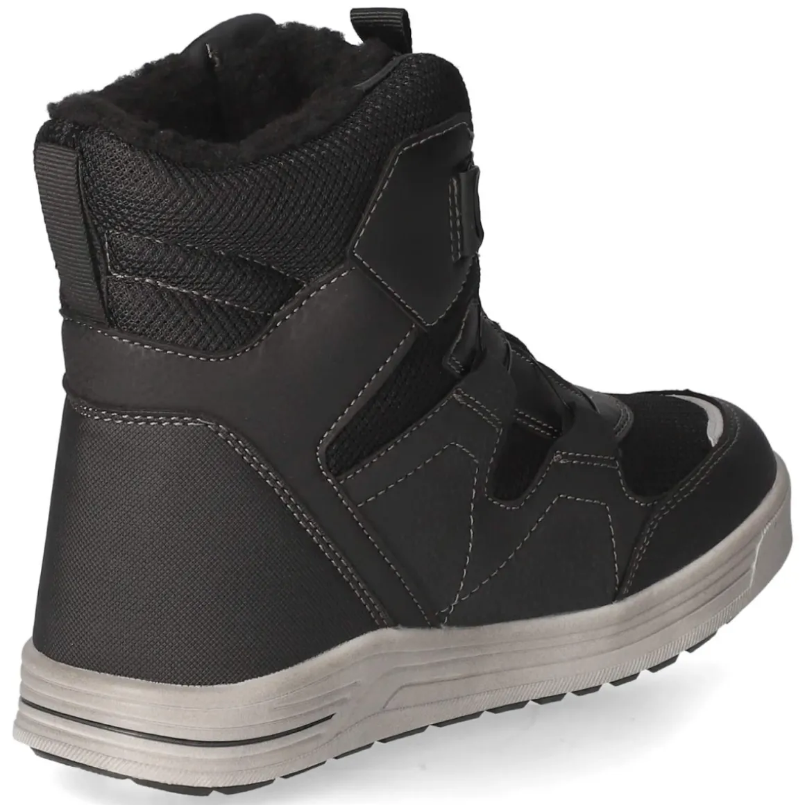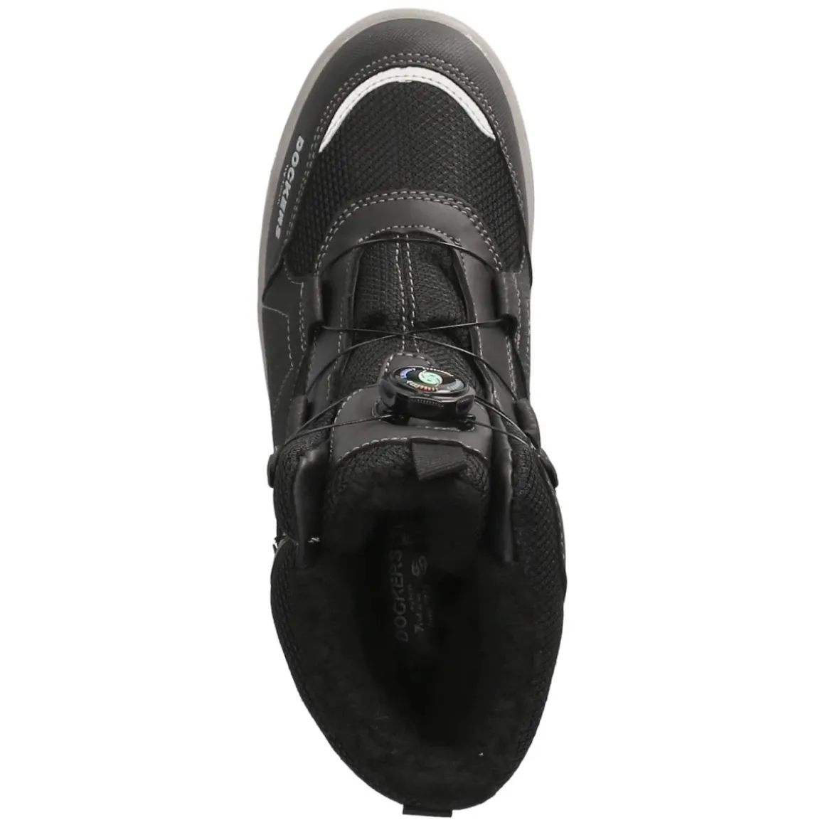Diese schwarzen Winterstiefeletten von Dockers vereinen Schutz, Komfort und clevere Details für kalte Tage. Das robuste Obermaterial aus Textil und Synthetik wird durch eine TEX-Ausstattung unterstützt, die wasserfest und atmungsaktiv ist, sodass kleine Füße angenehm trocken bleiben. Warmes Textilfutter und ein gepolstertes Fußbett sorgen für behagliche Wärme, während der gepolsterte Einstieg Druckstellen vorbeugt. Der sichere Drehverschluss ermöglicht ein schnelles, präzises Anpassen – selbst mit Handschuhen – und die Anziehlasche erleichtert das Hineinschlüpfen. Die flexible Laufsohle gibt trittsicheren Halt, die runde Schuhspitze bietet Zehenfreiheit, reflektierende Details erhöhen die Sichtbarkeit. Markenlogos setzen sportliche Akzente, die Passform fällt normal aus. Modetipp: Zu Funktionshose und wasserabweisender Steppjacke einen leuchtenden Beanie wählen – das Schwarze kommt so besonders cool zur Geltung.