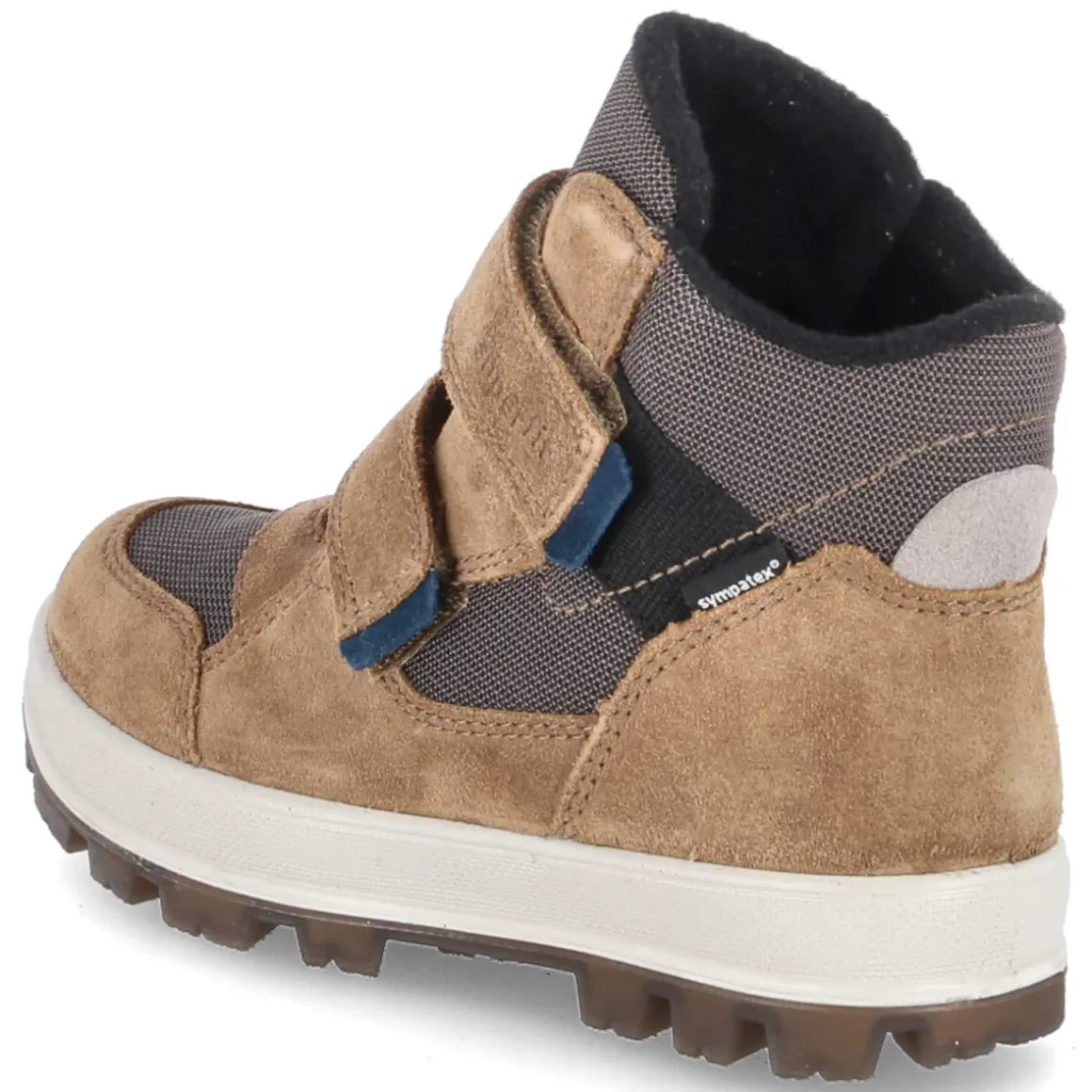 Die Winterstiefeletten TEDD von Superfit verbinden kindgerechten Komfort mit zuverlässigem Wetterschutz. Das Obermaterial aus Leder und Textil liegt robust am Fuß, während Warmfutter und die atmungsaktive Sympatex-Ausstattung für ein ausgeglichenes Klima sorgen. Zwei praktische Klettverschlüsse erleichtern das An- und Ausziehen und sichern den Halt, der rundum gepolsterte Einstiegsbereich erhöht den Tragekomfort. Eine verstärkte Zehen- und Fersenkappe schützt bei Abenteuern im Freien, die flexible, profilierte Laufsohle mit rutschhemmenden Eigenschaften gibt Trittsicherheit auf nassem oder verschneitem Untergrund. Das herausnehmbare Wechselfußbett lässt sich zum Lüften oder für eigene Einlagen nutzen. Mit runder Schuhspitze und normaler Passform eignet sich TEDD ideal für den Alltag von Kita bis Schulweg. Modetipp: In Kombination mit einer Thermojeans, einem Parka in Erdtönen und kuschligen Wollsocken entsteht ein harmonischer Winterlook in warmem Braun.