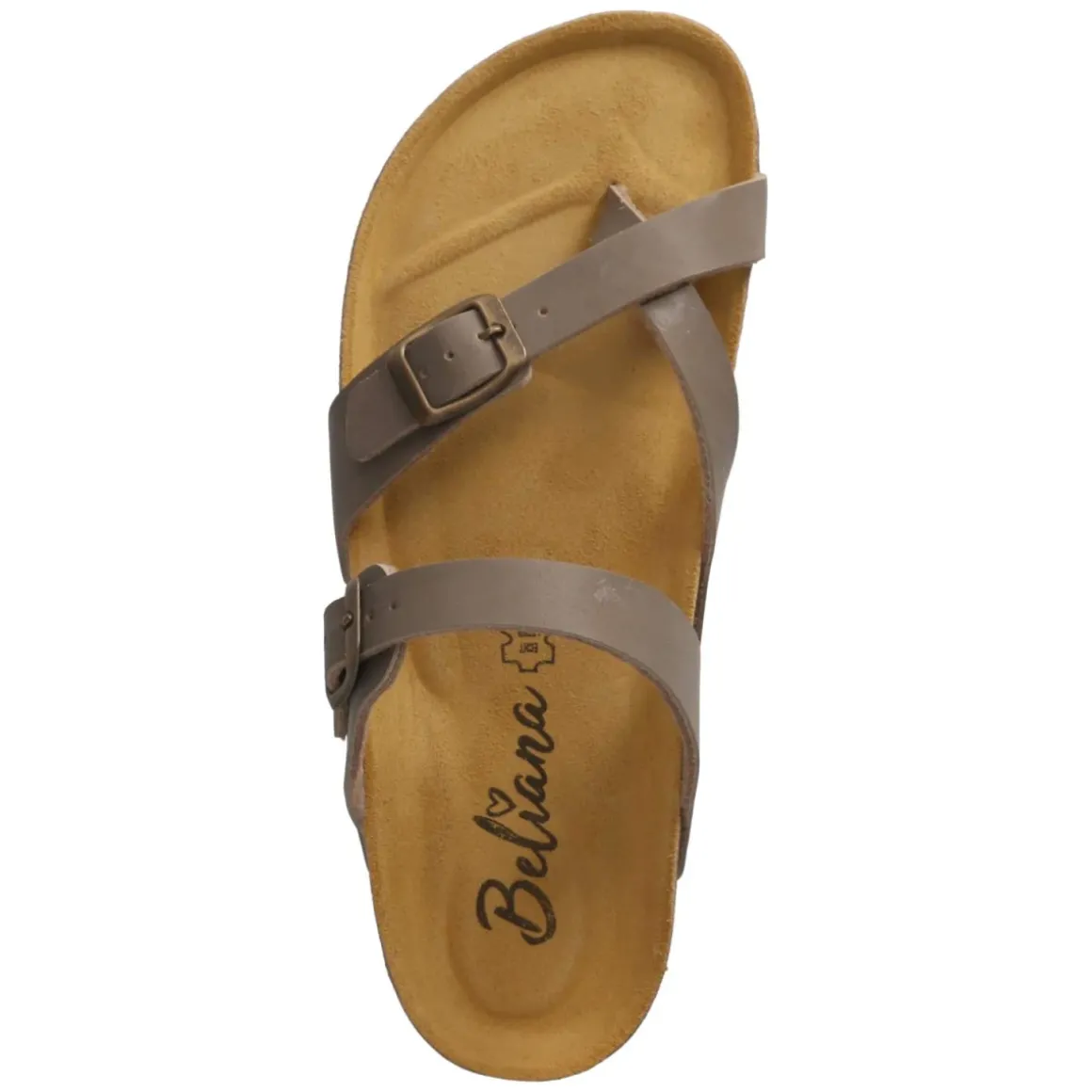 Der Zehentrenner von Beliana zeigt sich in warmem Braun und verbindet lässigen Sommerstil mit durchdachtem Komfort. Das Obermaterial aus Synthetik überzeugt mit pflegeleichter Oberfläche, während die lederne Decksohle und das vorgeformte, weich gepolsterte Fußbett ein angenehmes Tragegefühl über den ganzen Tag bieten. Eine flexible Laufsohle unterstützt den natürlichen Abrollvorgang und sorgt für Trittsicherheit auf Stadtpflaster wie auf Promenaden. Dank sicherer Schnallen und verstellbarem Verschluss lässt sich der Sitz präzise anpassen. Die offene Schuhspitze unterstreicht den luftigen Charakter und macht das Modell zur vielseitigen Wahl für Damen. Der Schnitt fällt normal aus und erleichtert die Größenauswahl. Modetipp: Ideal zu einem cremefarbenen Midikleid aus Baumwolle und einer Flechttasche, ergänzt durch zarten Goldschmuck.